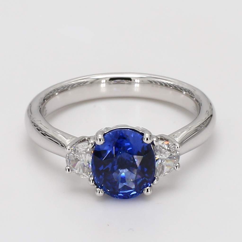 OVAL CEYLON SAPPHIRE & HALF MOON DIAMOND 14KW RING