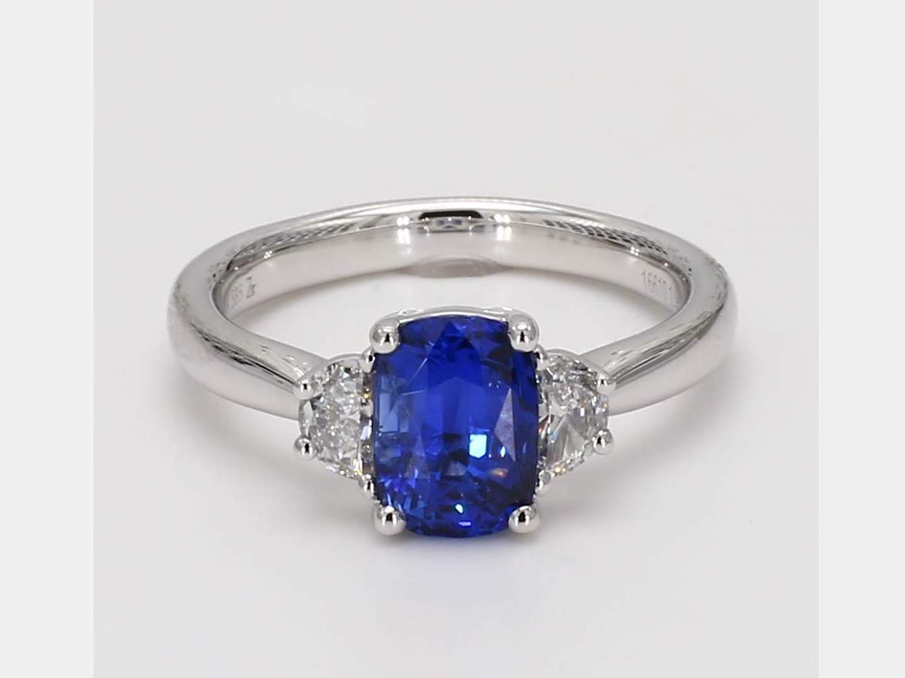 CUSHION CEYLON SAPPHIRE & HALF MOON DIAMOND 14KW RING