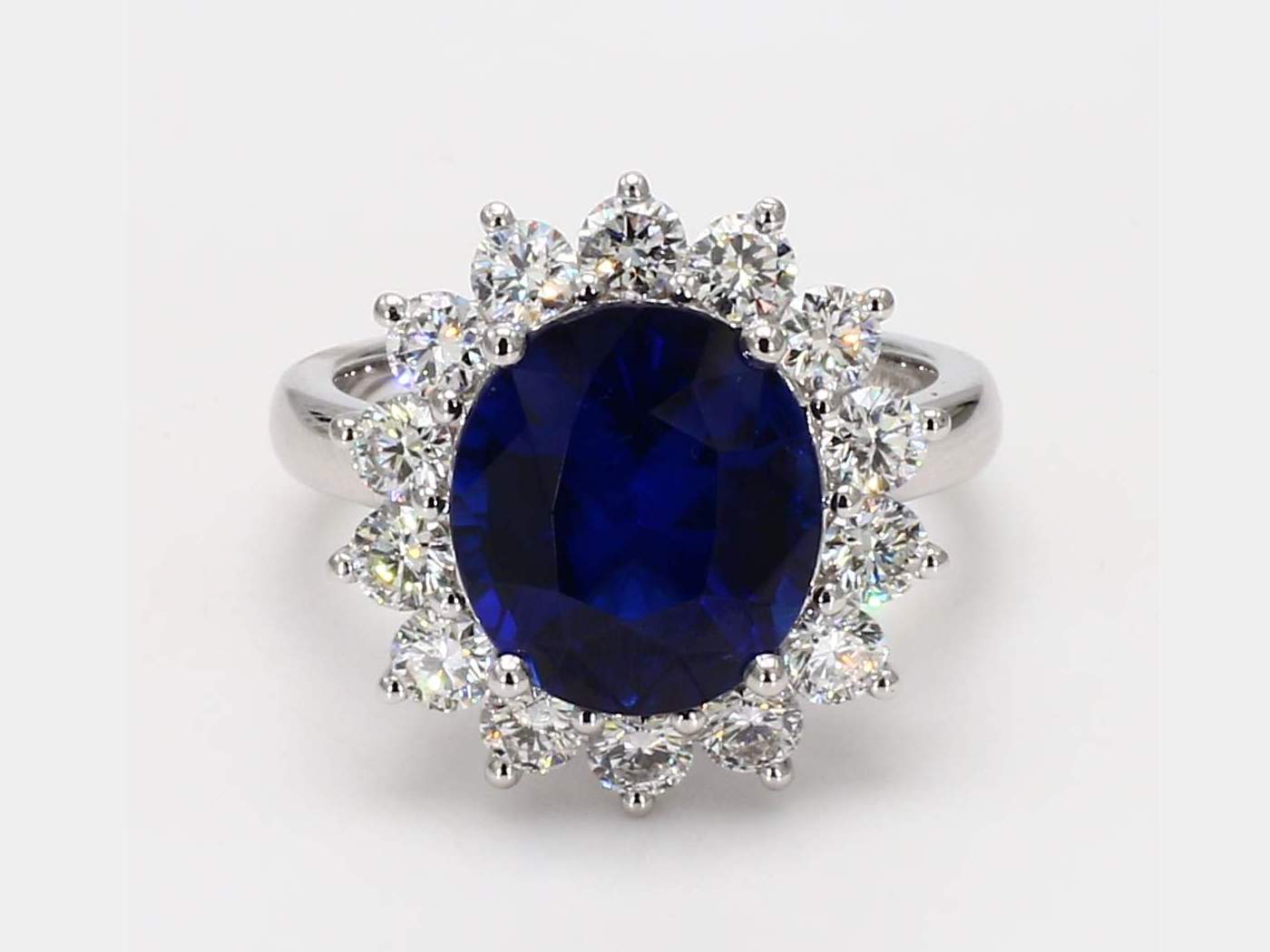 OVAL CEYLON SAPPHIRE & ROUND DIAMOND PLATINUM RING