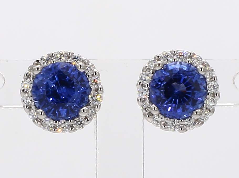 ROUND SAPPHIRE & ROUND DIAMOND 14KW EARRING