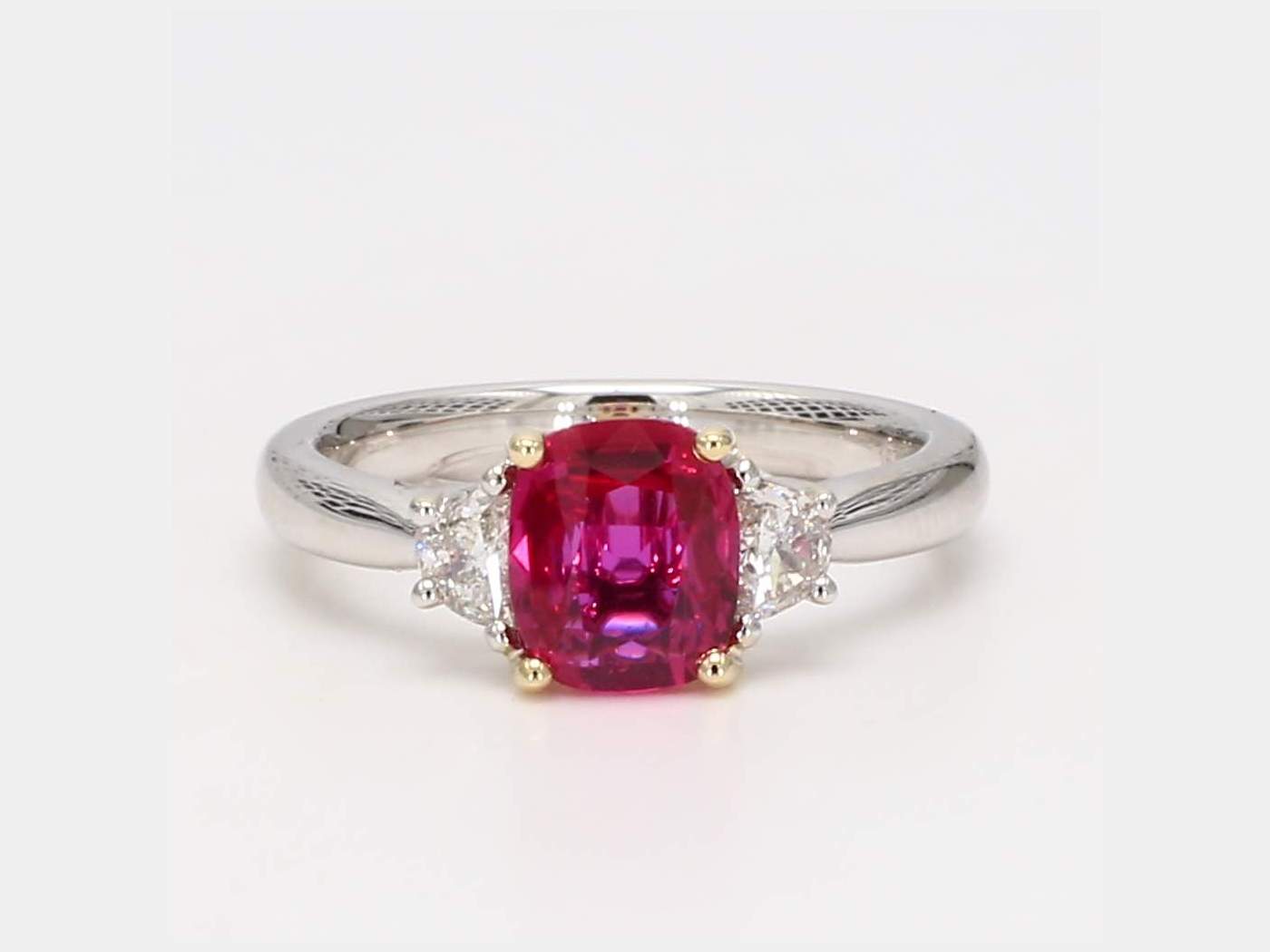 CUSHION RUBY & HALF MOON DIAMOND 14KW RING