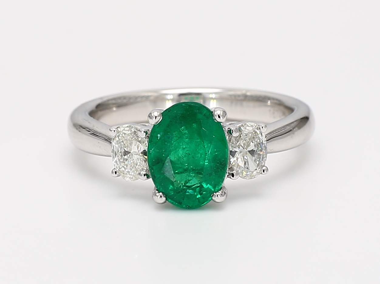 OVAL EMERALD & OVAL DIAMOND PLATINUM RING