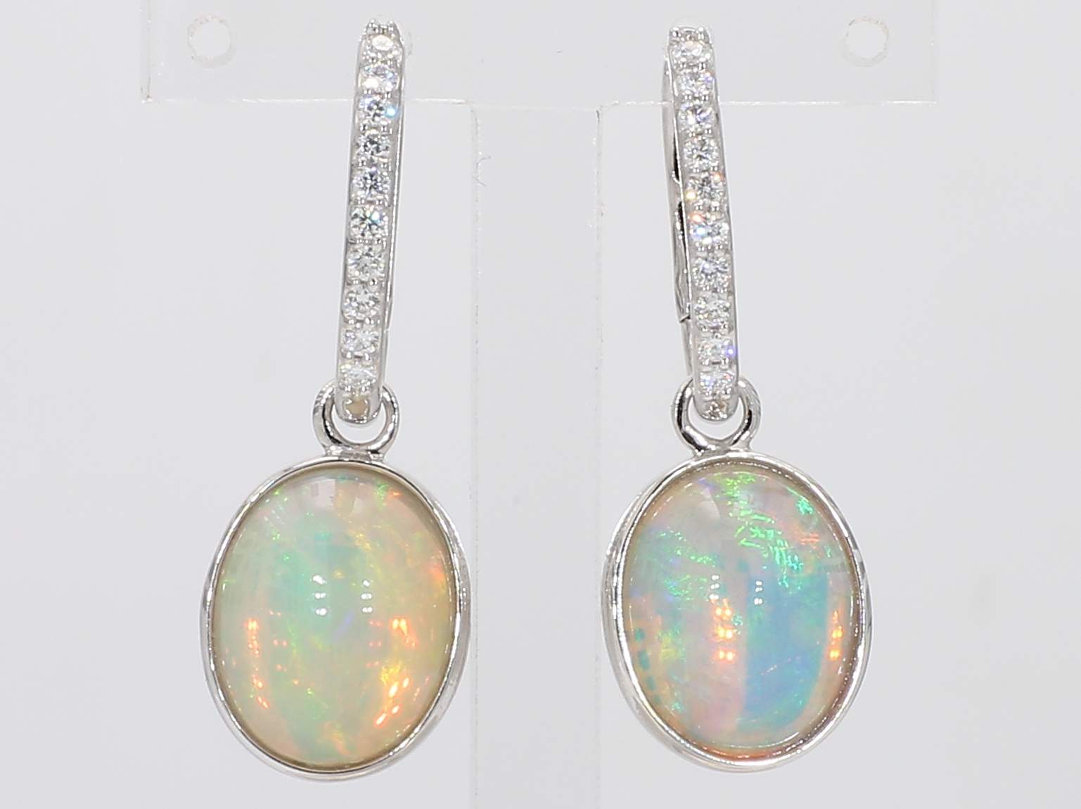 OVAL OPAL & ROUND DIAMOND 14KW EARRING