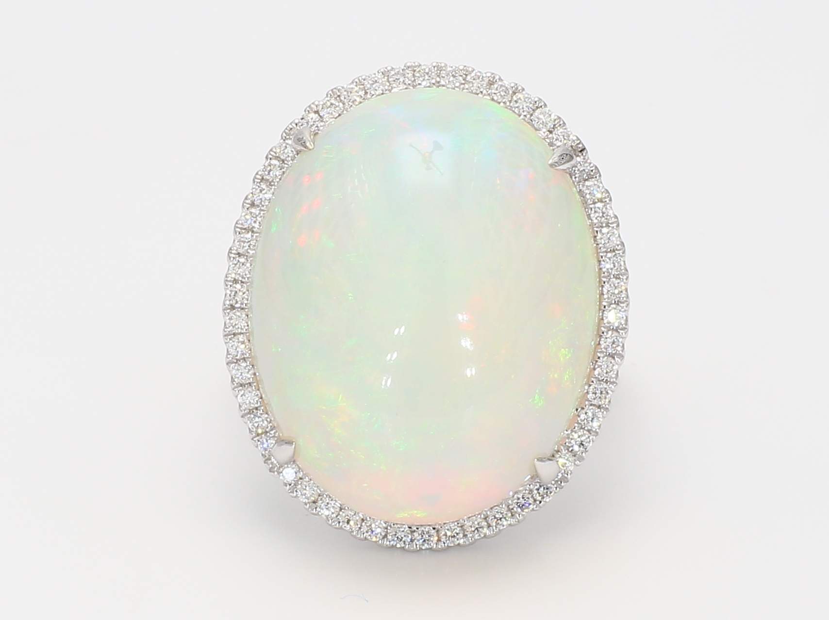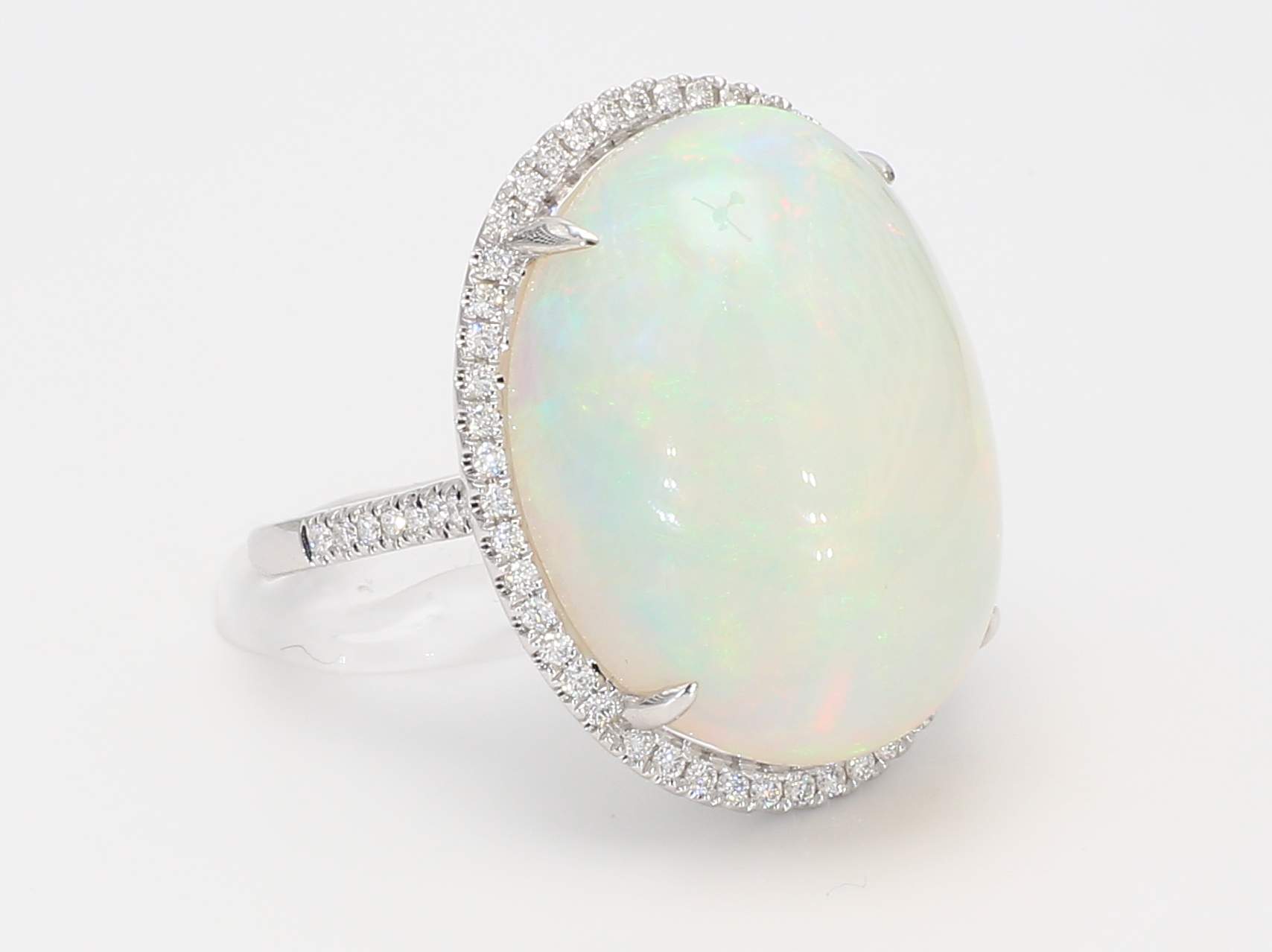 OVAL OPAL & ROUND DIAMOND 14KW RING