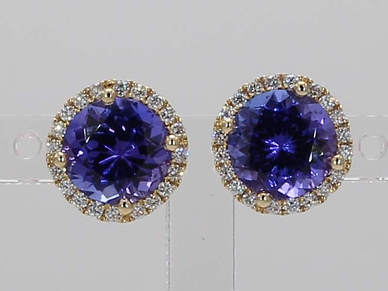 ROUND TANZANITE & ROUND DIAMOND 14KY EARRING