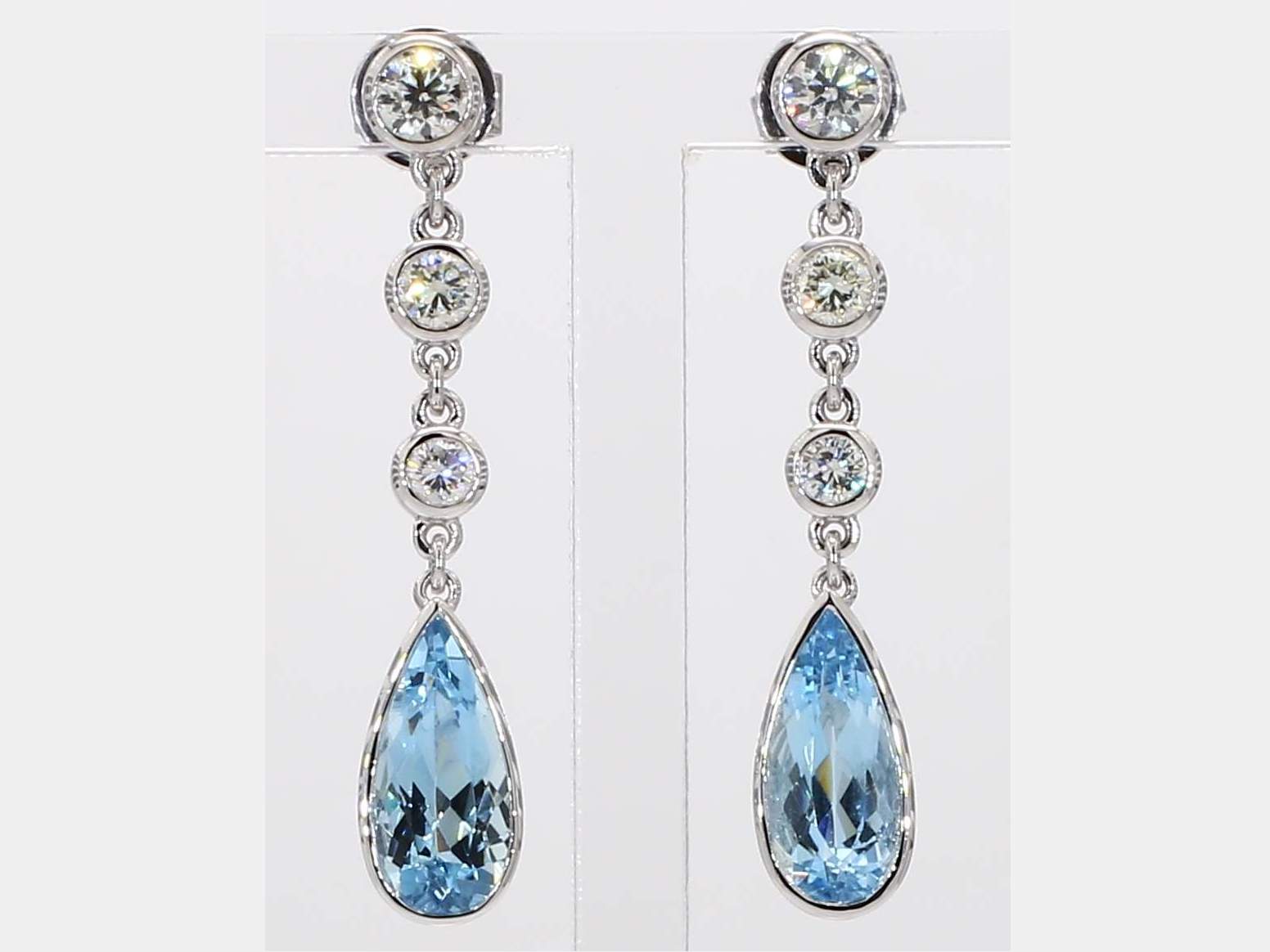 PEAR SHAPE AQUAMARINE & ROUND DIAMOND 14KW EARRING
