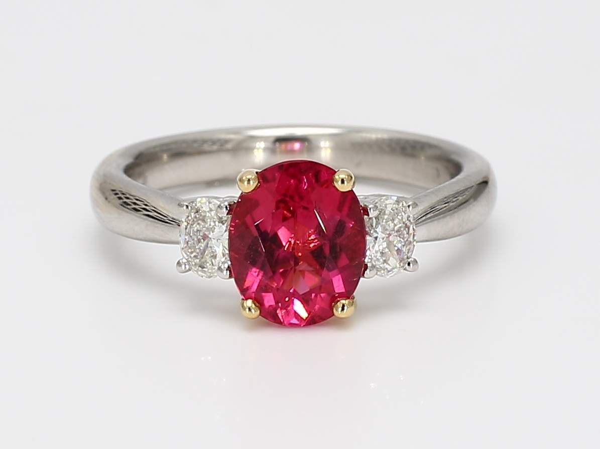 OVAL PINK TOURMALINE & OVAL DIAMOND PLATINUM RING