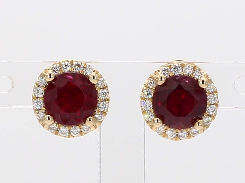 ROUND RUBY & ROUND DIAMOND 14KY EARRING
