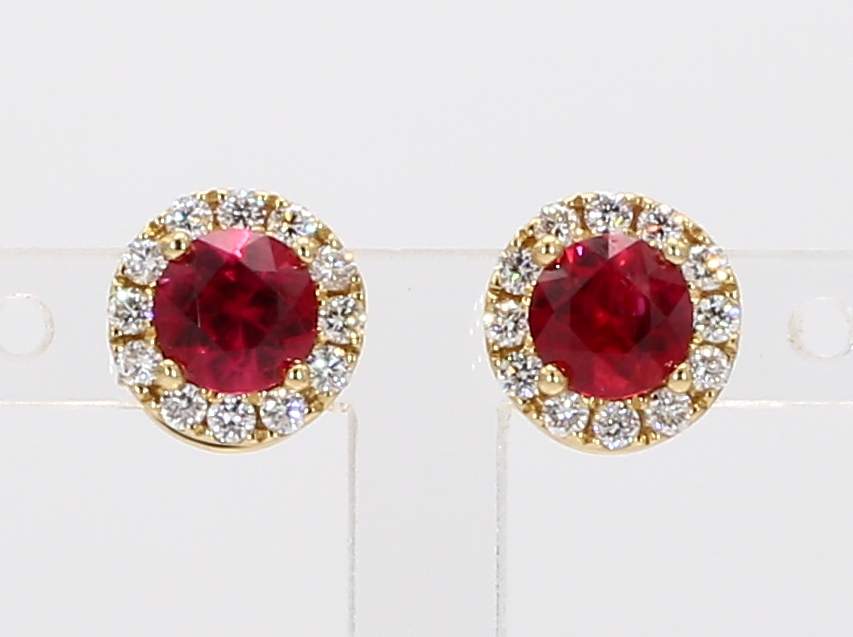 ROUND RUBY & ROUND DIAMOND 18KY EARRING
