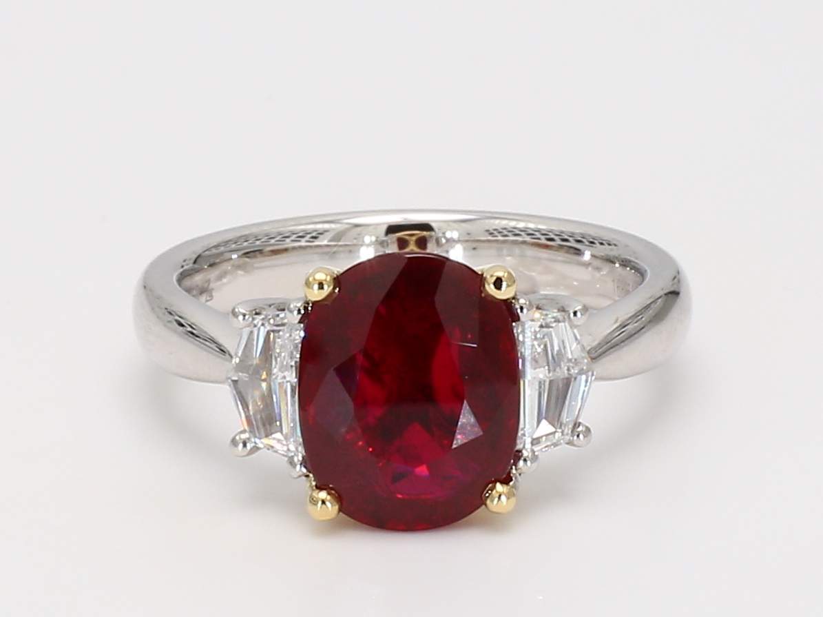 OVAL RUBY CDC 2111758 & EPAULETTE DIAMOND PLATINUM RING