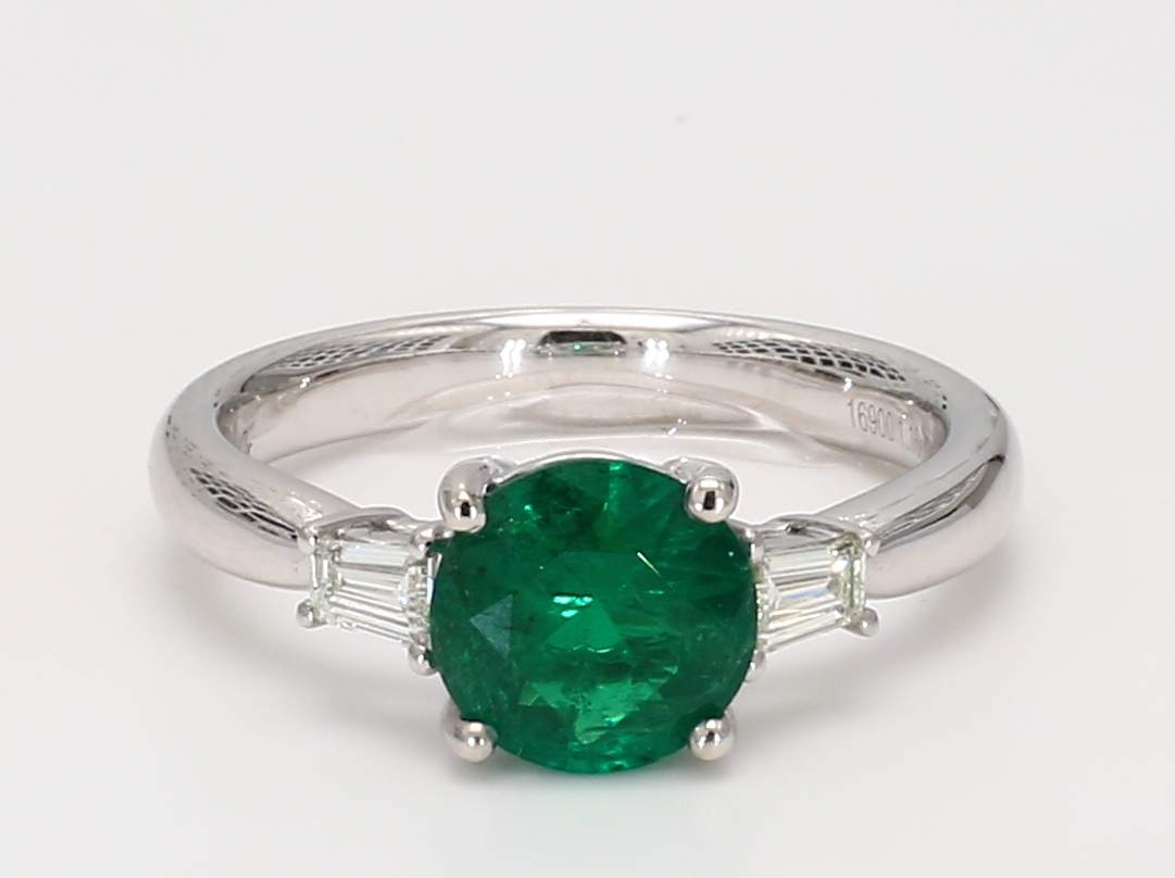 ROUND EMERALD & TAPER BAGUETTE DIAMOND 14KW RING