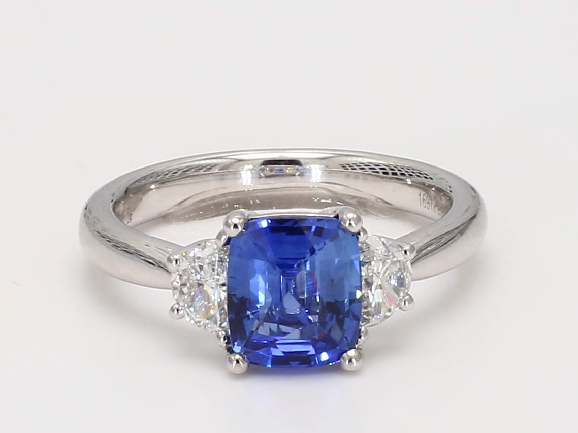 CUSHION SAPPHIRE & HALF MOON DIAMOND 14KW RING