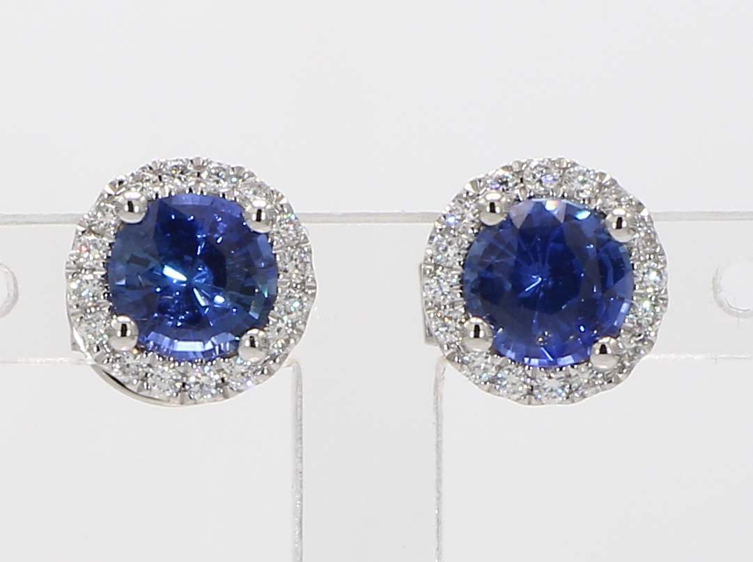 ROUND SAPPHIRE & ROUND DIAMOND 14KW EARRING
