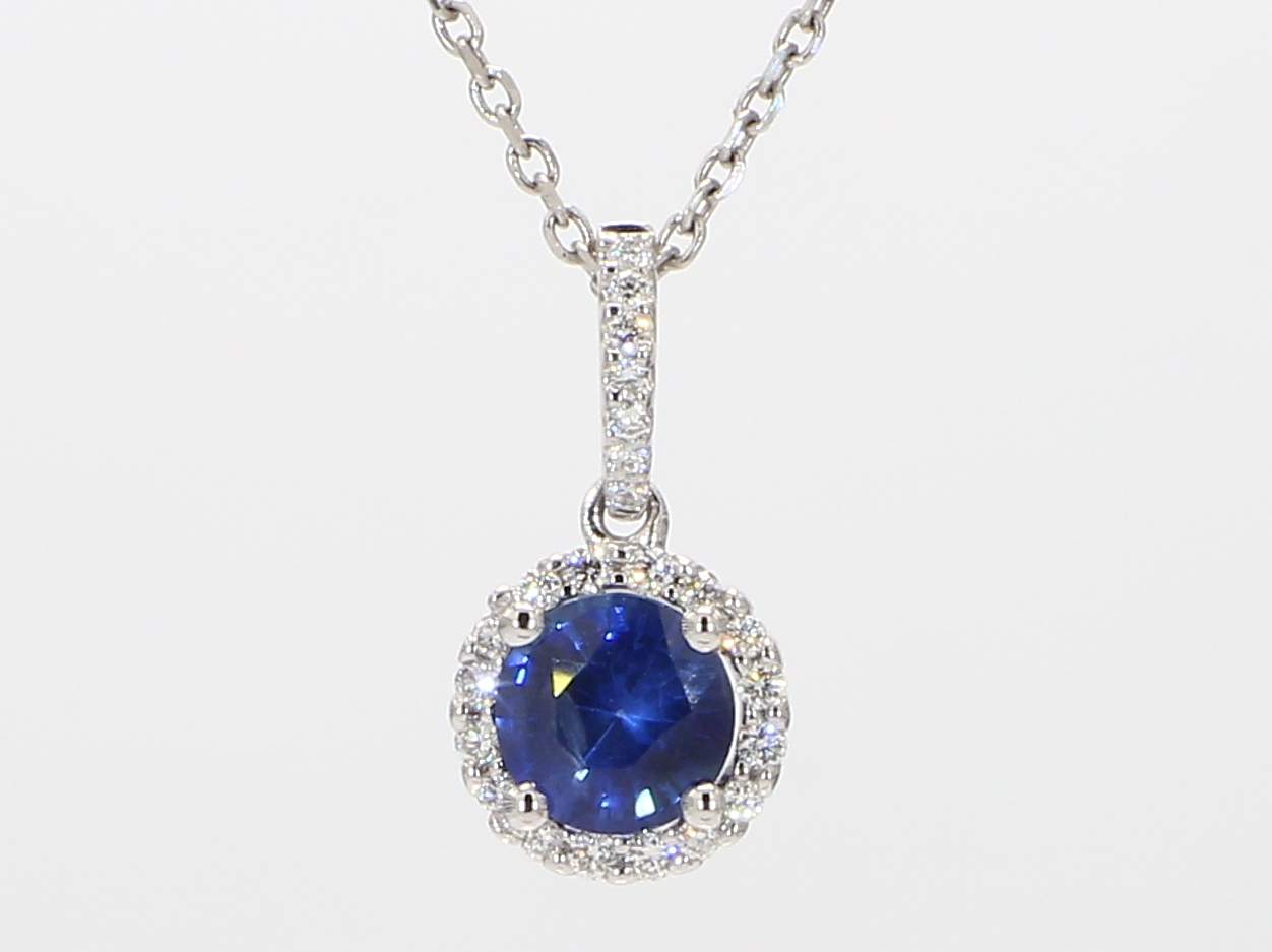ROUND SAPPHIRE & ROUND DIAMOND 14KW PENDANT