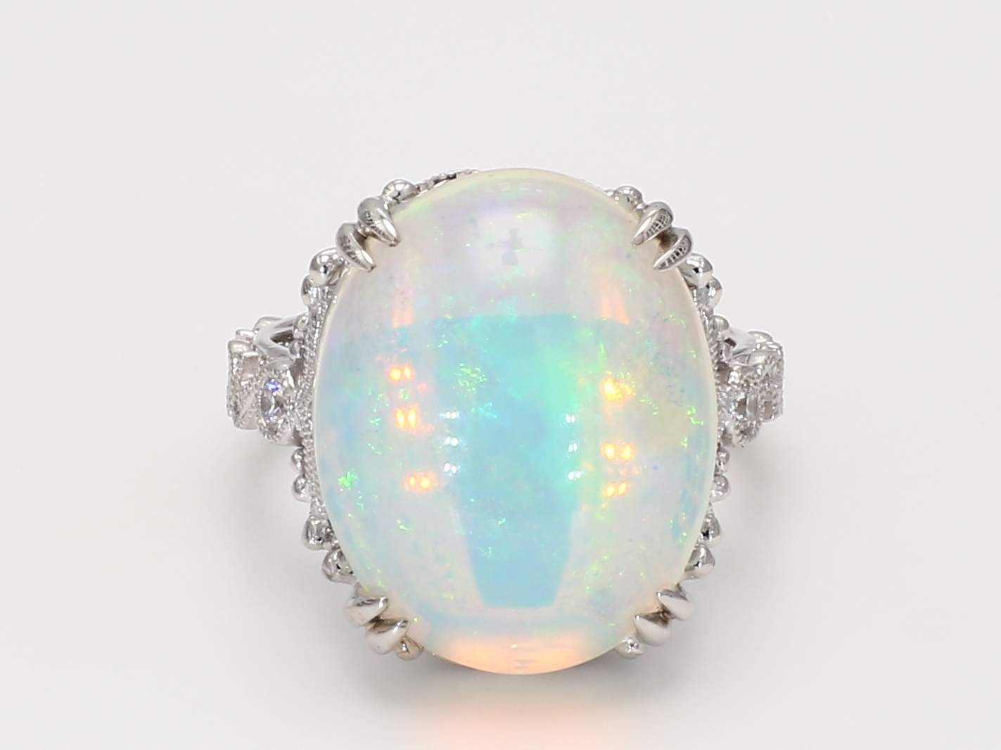 OVAL OPAL & ROUND DIAMOND 14KW RING