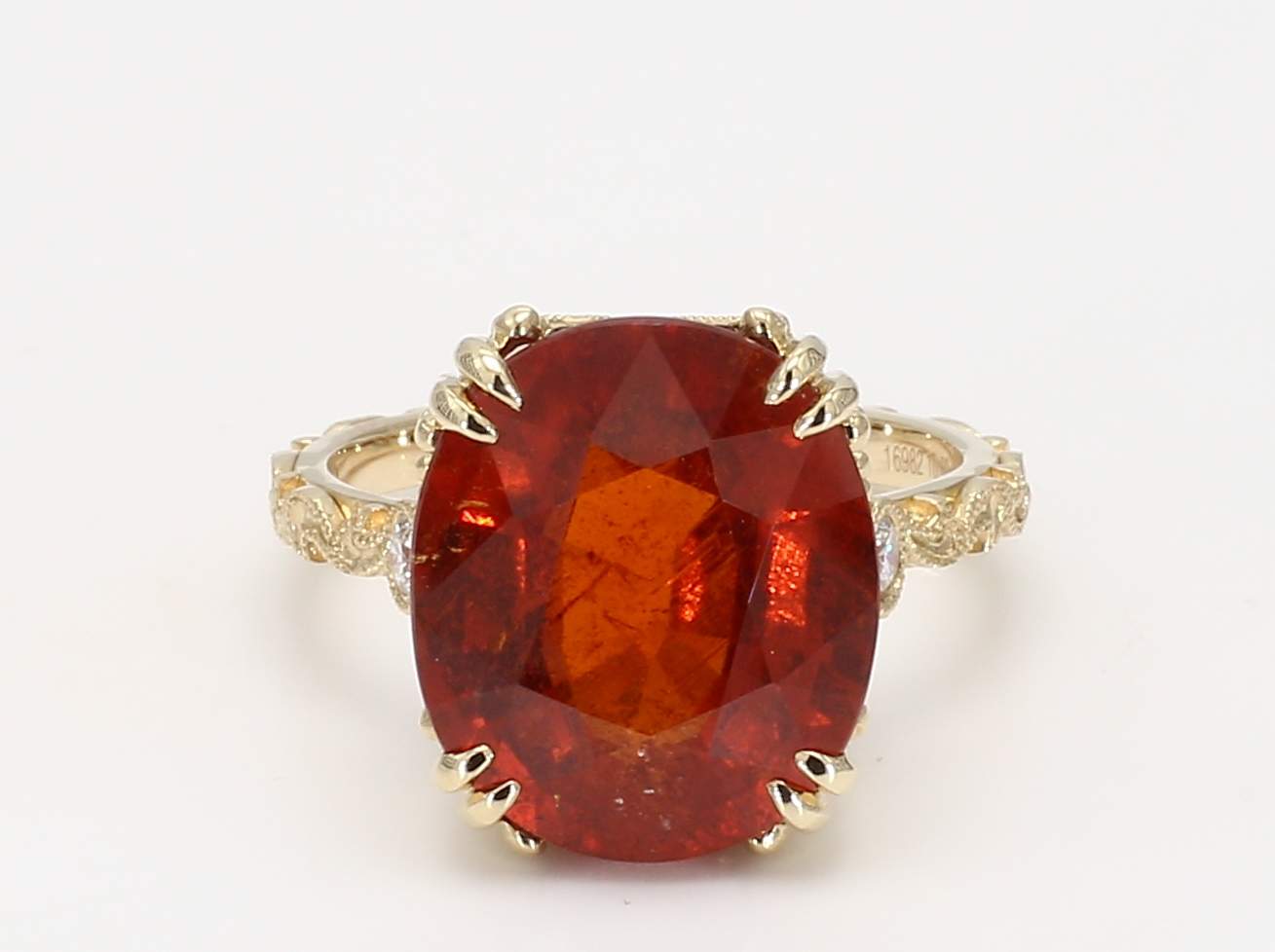 OVAL MANDARIN GARNET & ROUND DIAMOND 14KY RING
