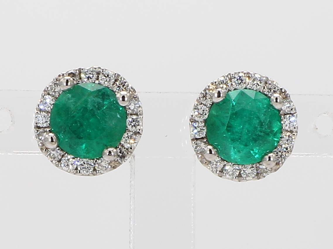 ROUND EMERALD & ROUND DIAMOND 14KW EARRING