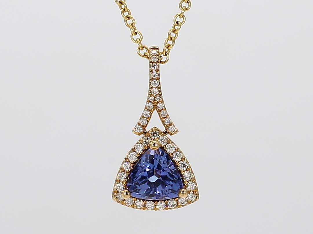 TRILLION TANZANITE & ROUND DIAMOND 14KY PENDANT