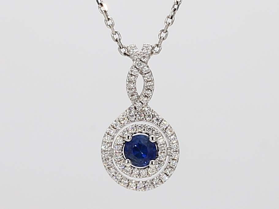 ROUND SAPPHIRE & ROUND DIAMOND 14KW PENDANT