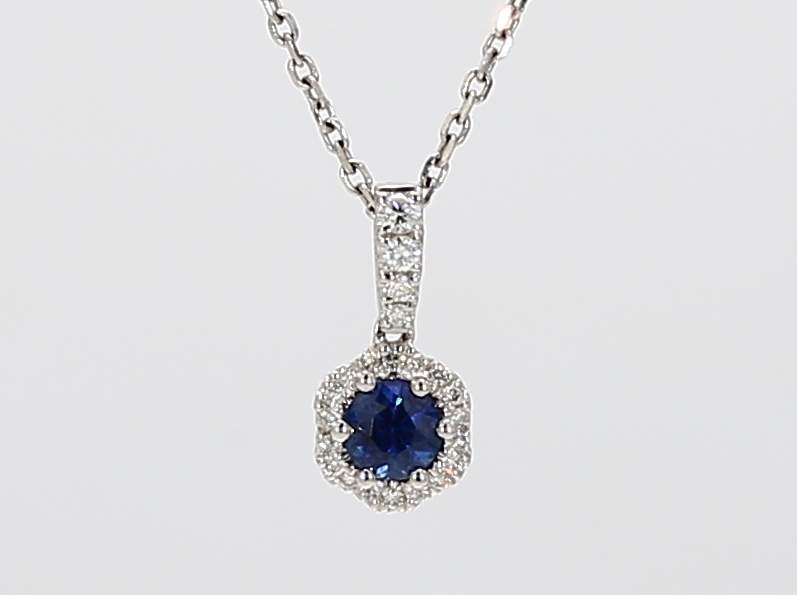 ROUND SAPPHIRE & ROUND DIAMOND 14KW PENDANT
