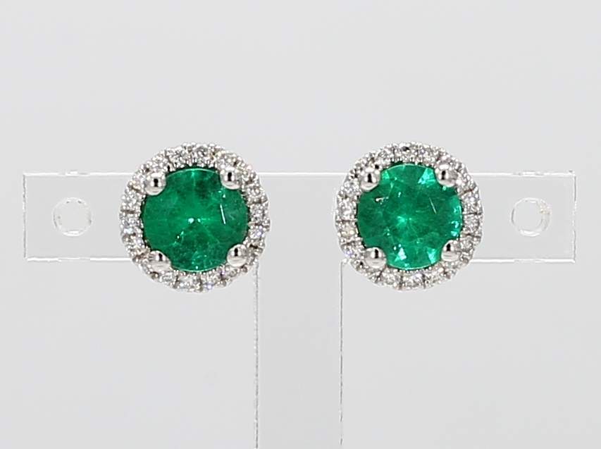 ROUND EMERALD & ROUND DIAMOND 14KW EARRING