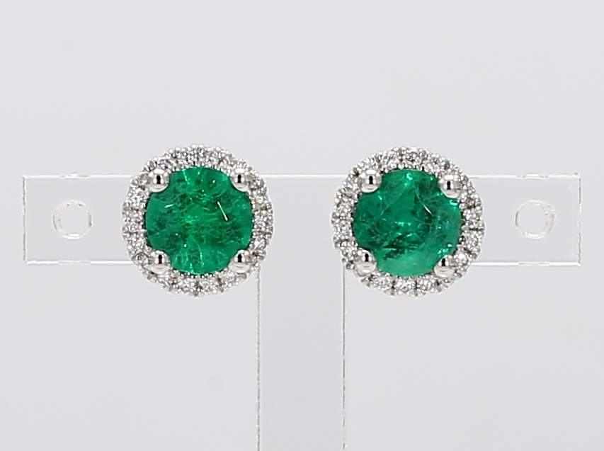 ROUND EMERALD & ROUND DIAMOND 14KW EARRING