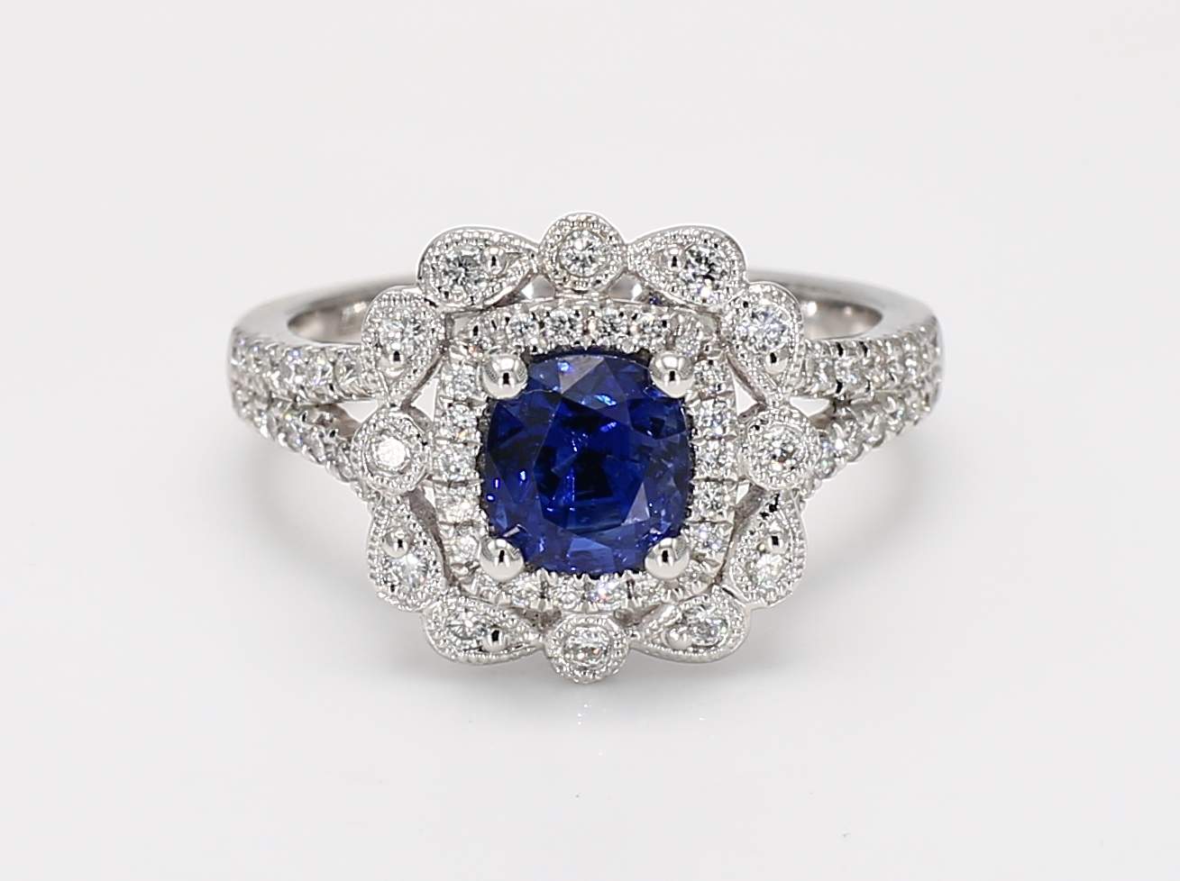 CUSHION SAPPHIRE & ROUND DIAMOND PLATINUM RING