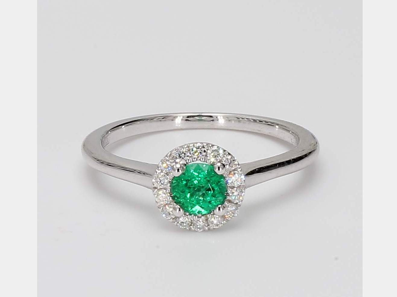 ROUND EMERALD & ROUND DIAMOND 14KW RING