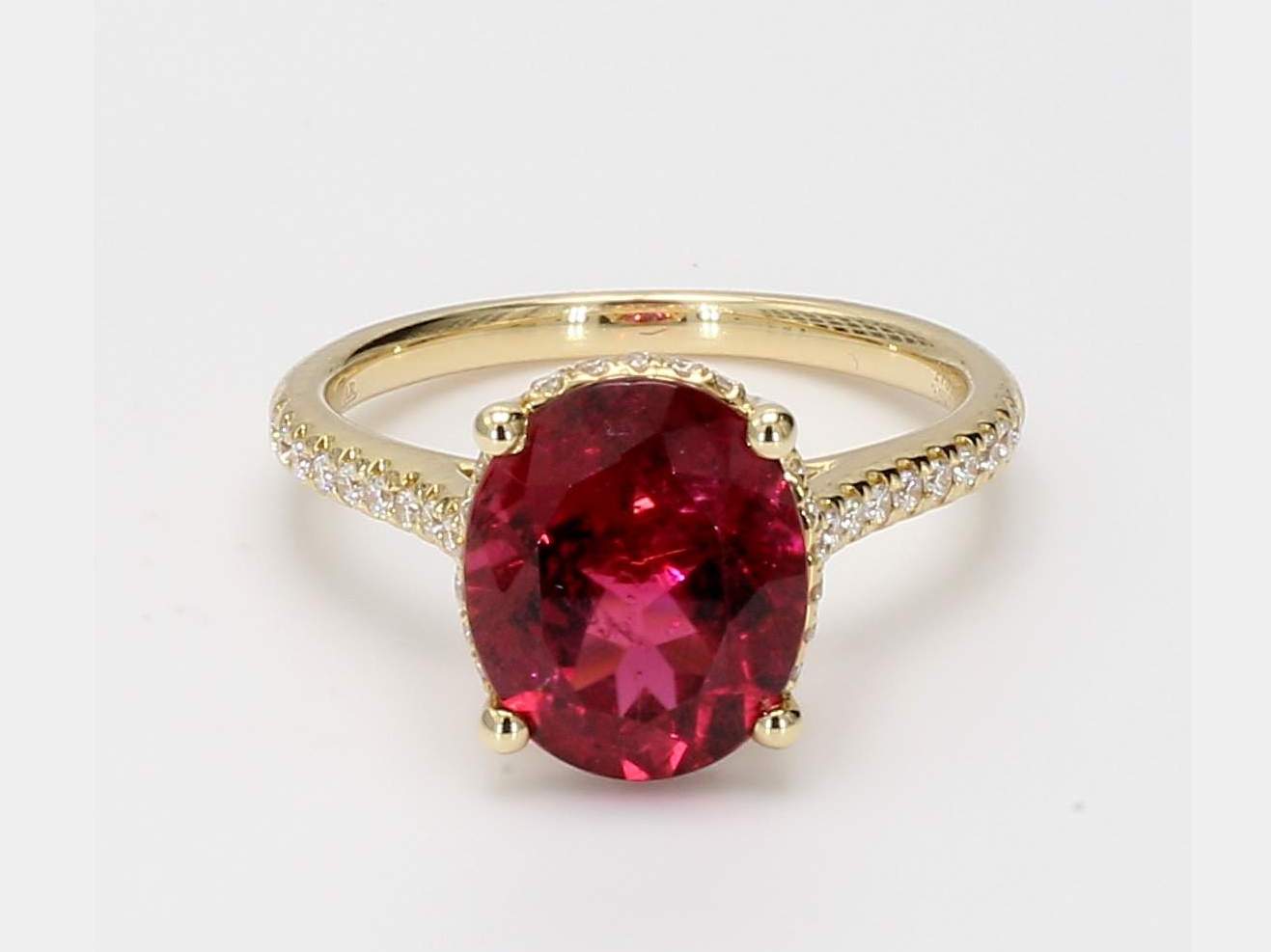 OVAL RUBELLITE & ROUND DIAMOND 14KY RING