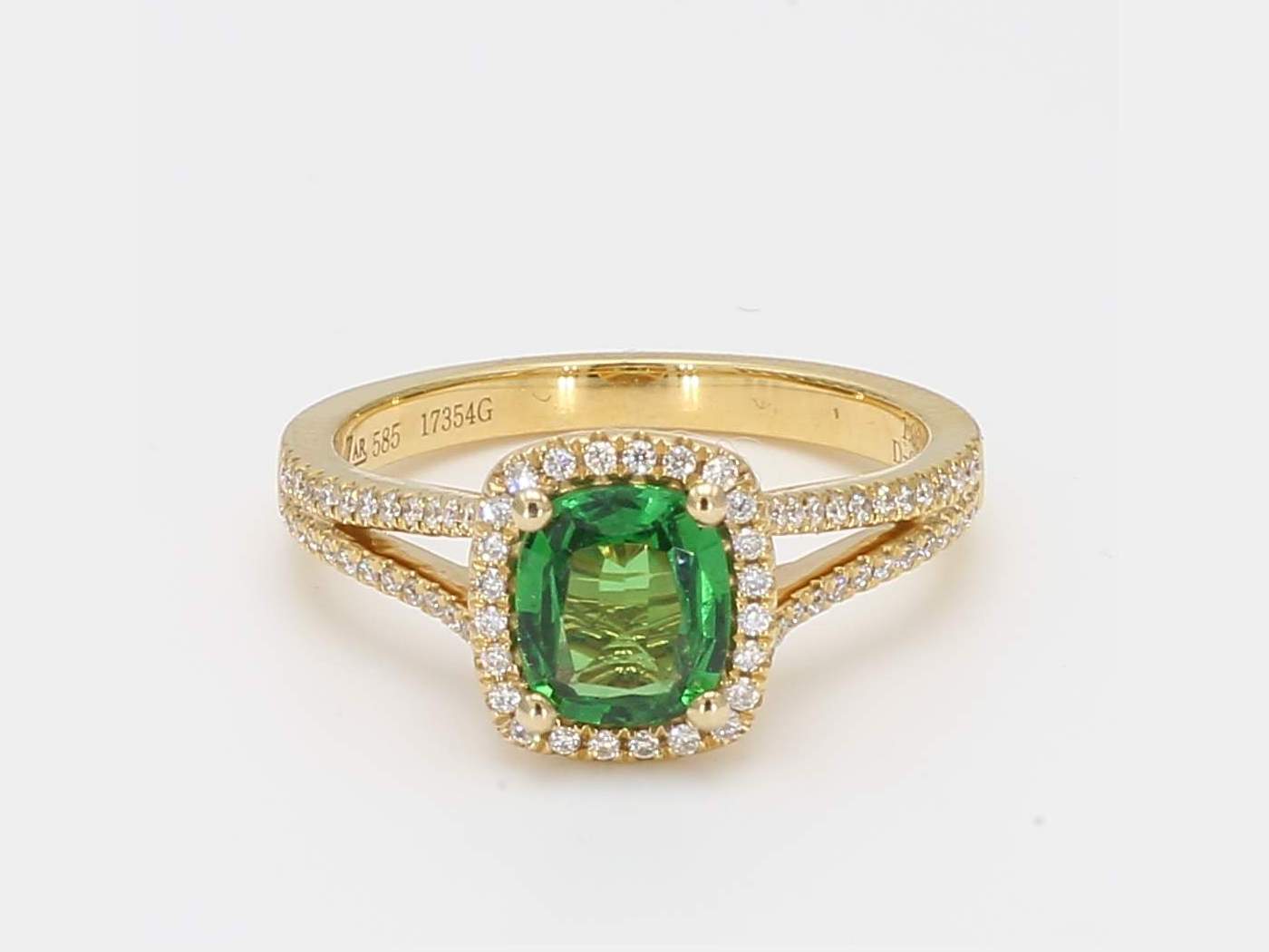CUSHION TSAVORITE GARNET & ROUND DIAMOND 14KY RING