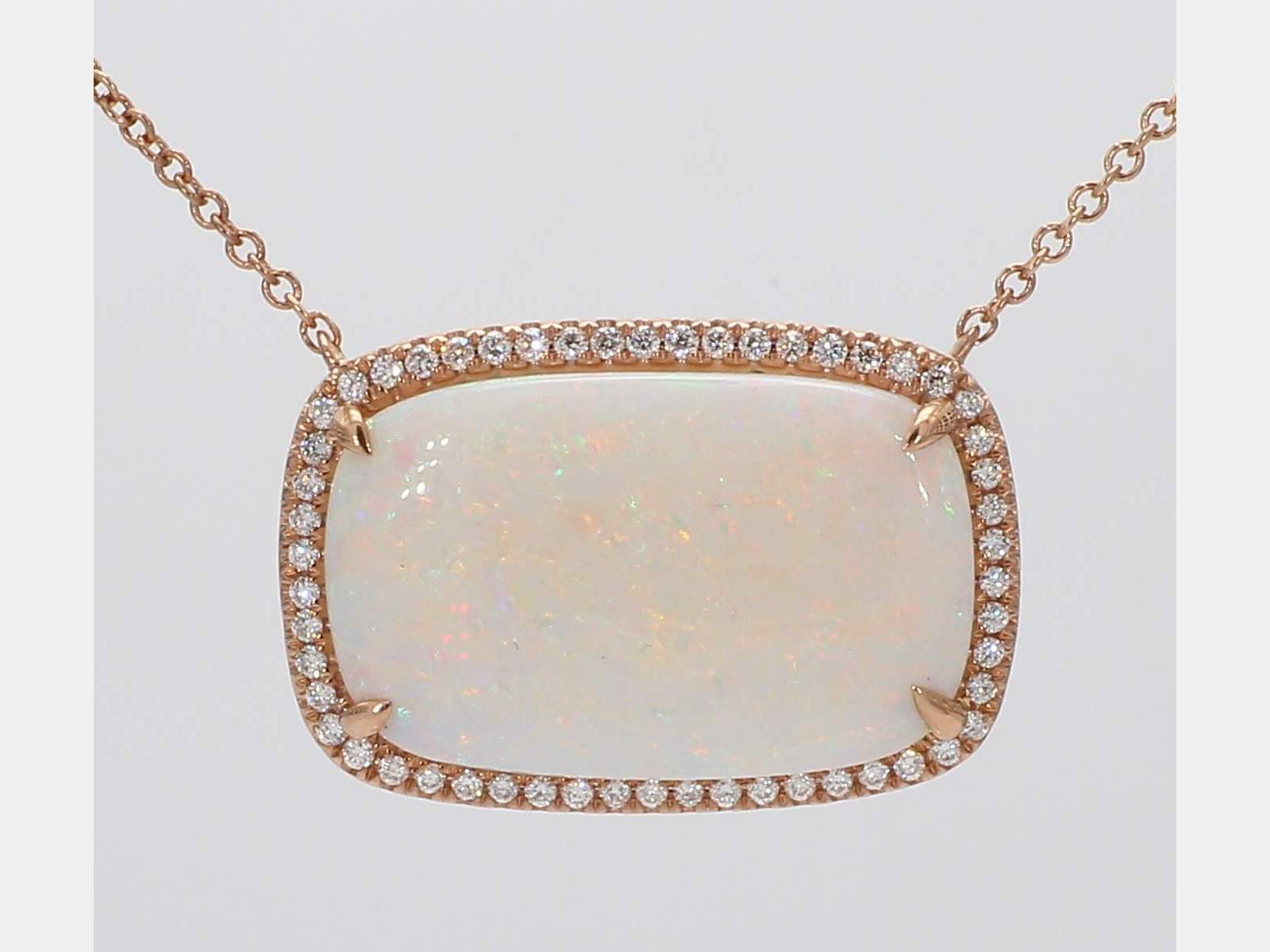 CUSHION AUSTRALIAN OPAL & ROUND DIAMOND 14KR NECKLACE
