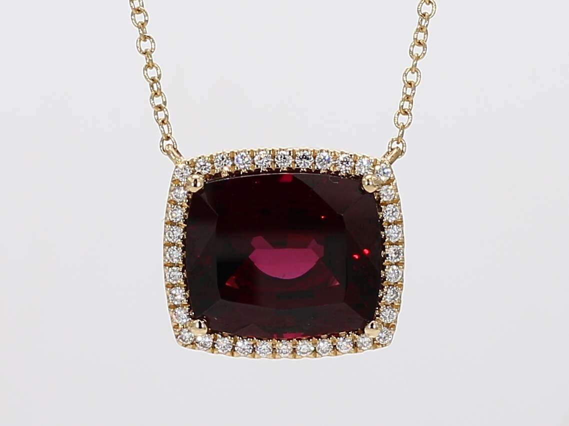 CUSHION RHODOLITE GARNET & ROUND DIAMOND 14KY NECKLACE