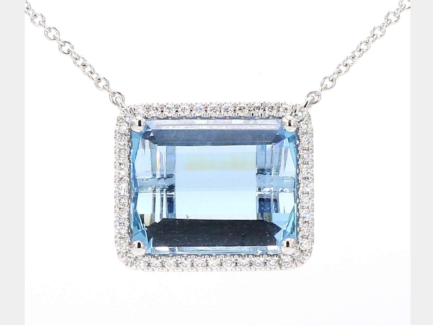 EMERALD CUT AQUAMARINE & ROUND DIAMOND 14KW NECKLACE