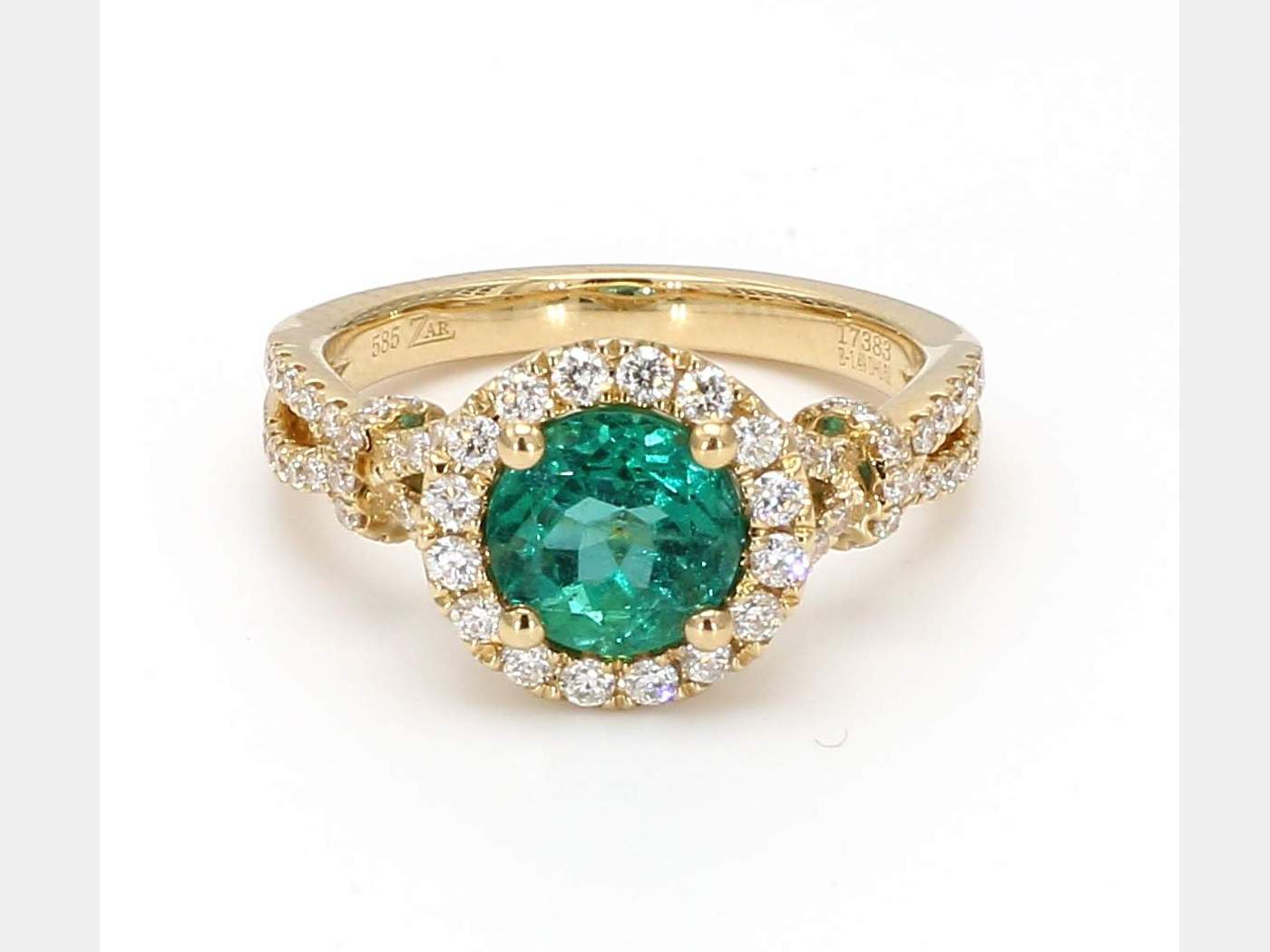 ROUND EMERALD GIA 6203894055 & ROUND DIAMOND 14KY RING