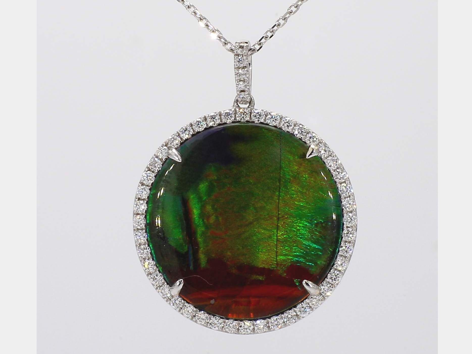 ROUND AMMOLITE & ROUND DIAMOND 14KW PENDANT