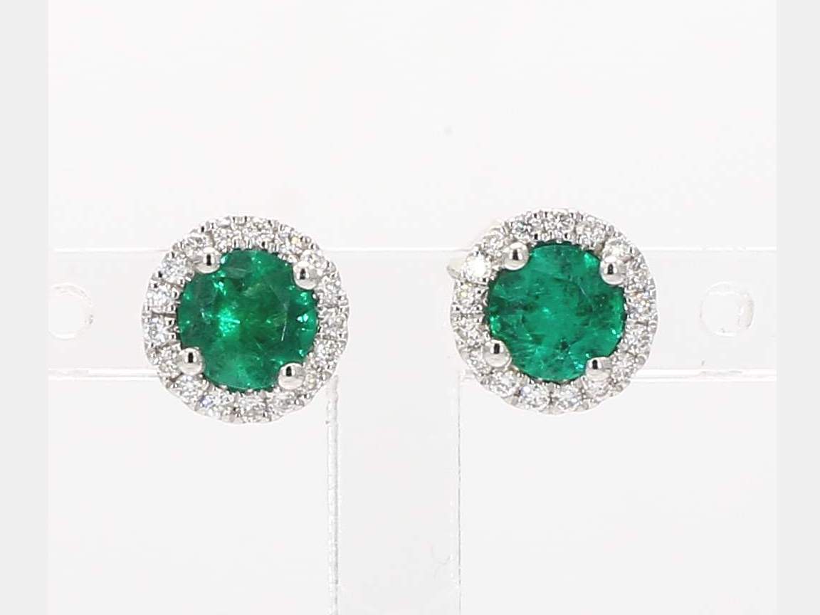 ROUND EMERALD & ROUND DIAMOND 14KW EARRING