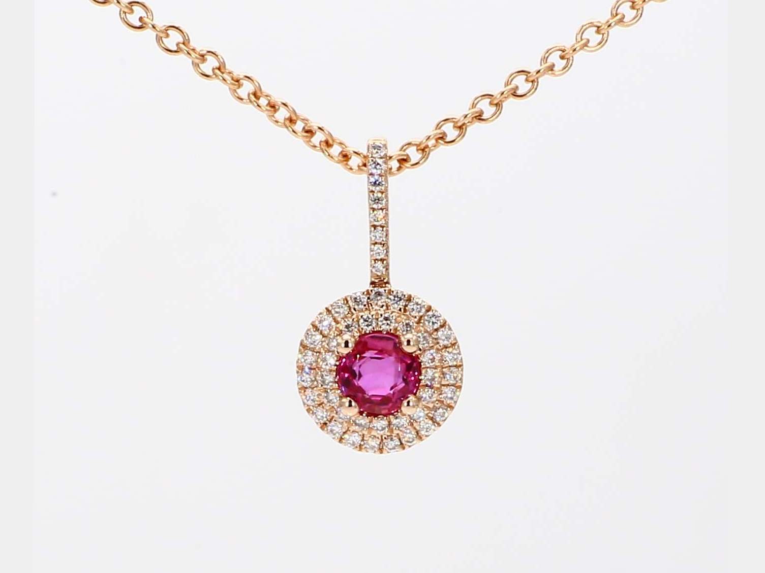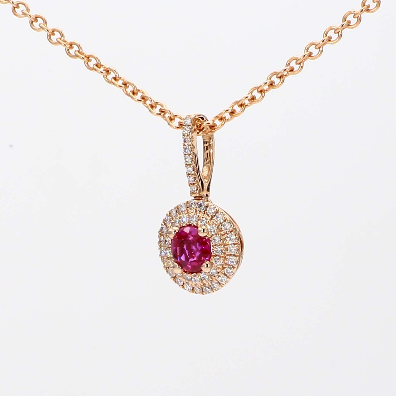 ROUND RUBY & ROUND DIAMOND 14KR PENDANT