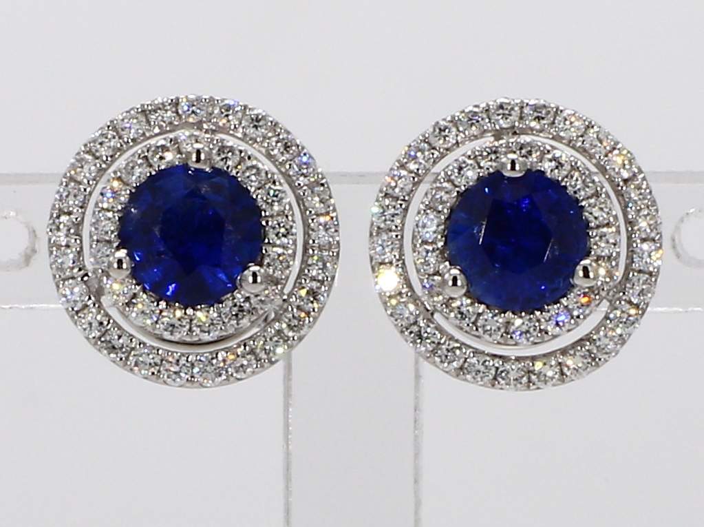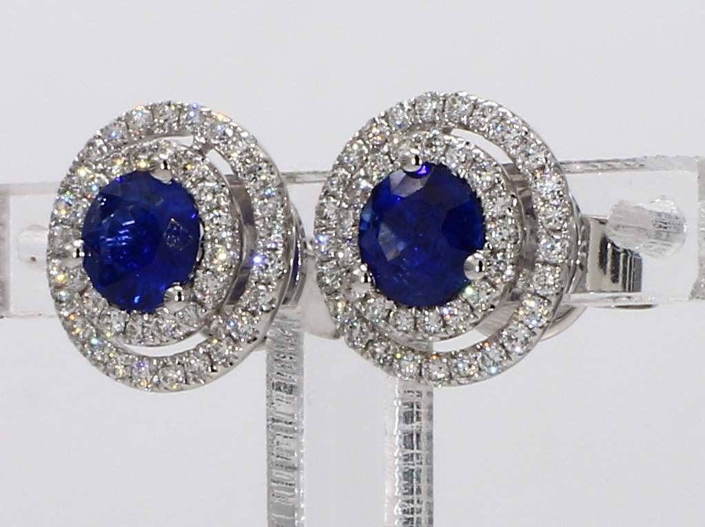 ROUND SAPPHIRE & ROUND DIAMOND 14KW EARRING
