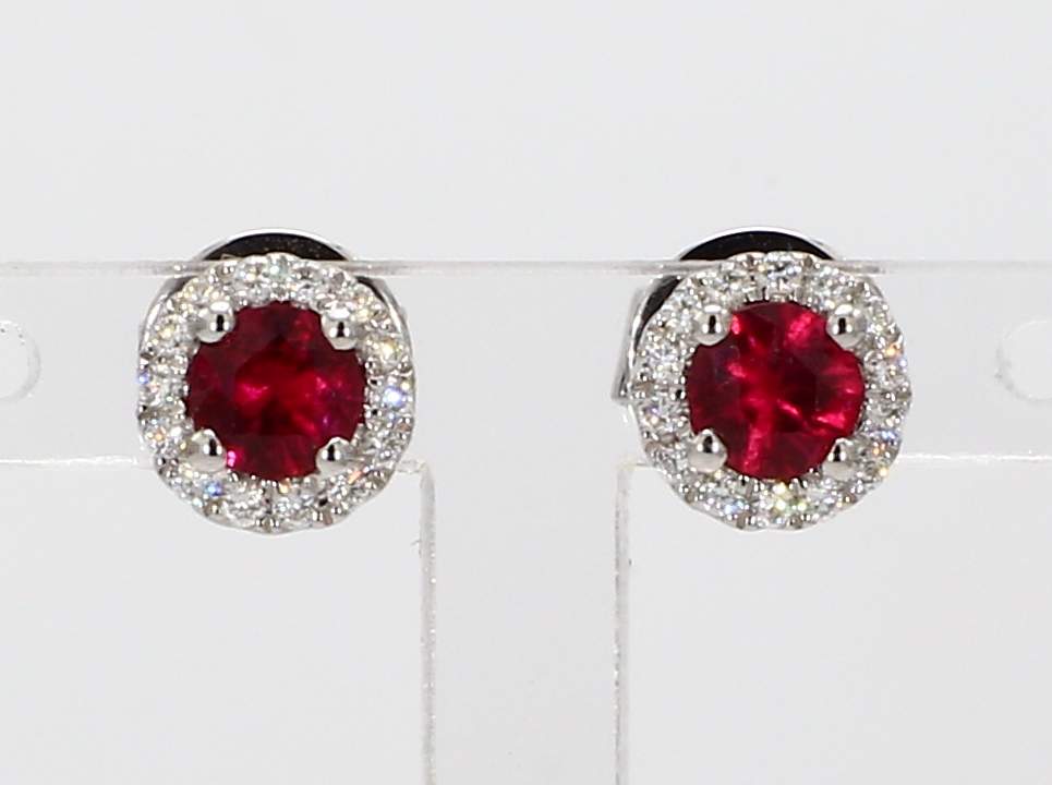 ROUND RUBY & ROUND DIAMOND 14KW EARRING