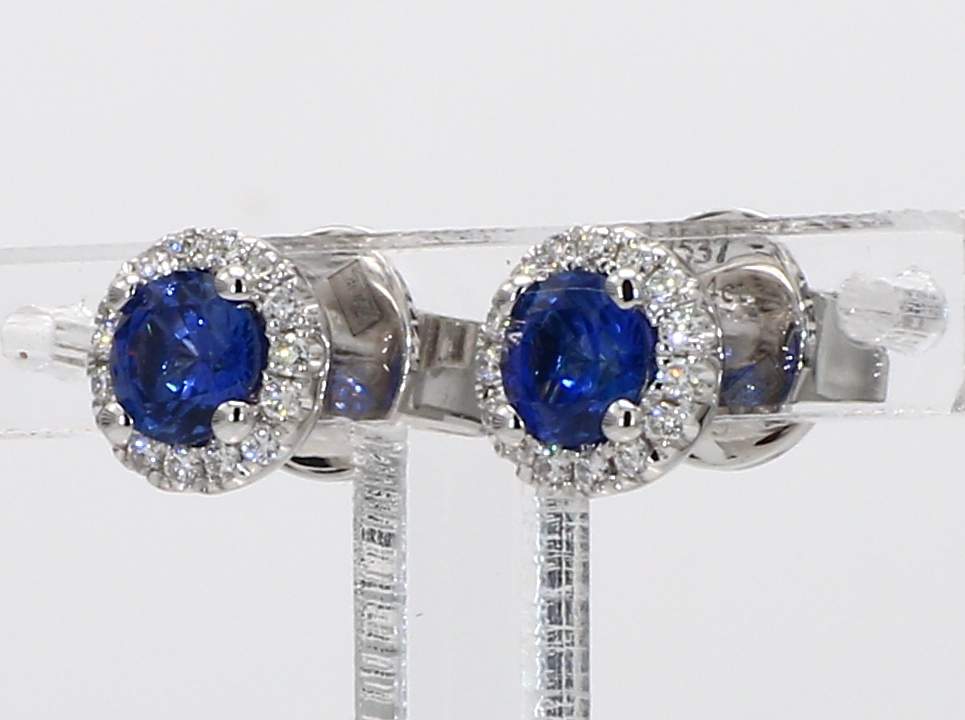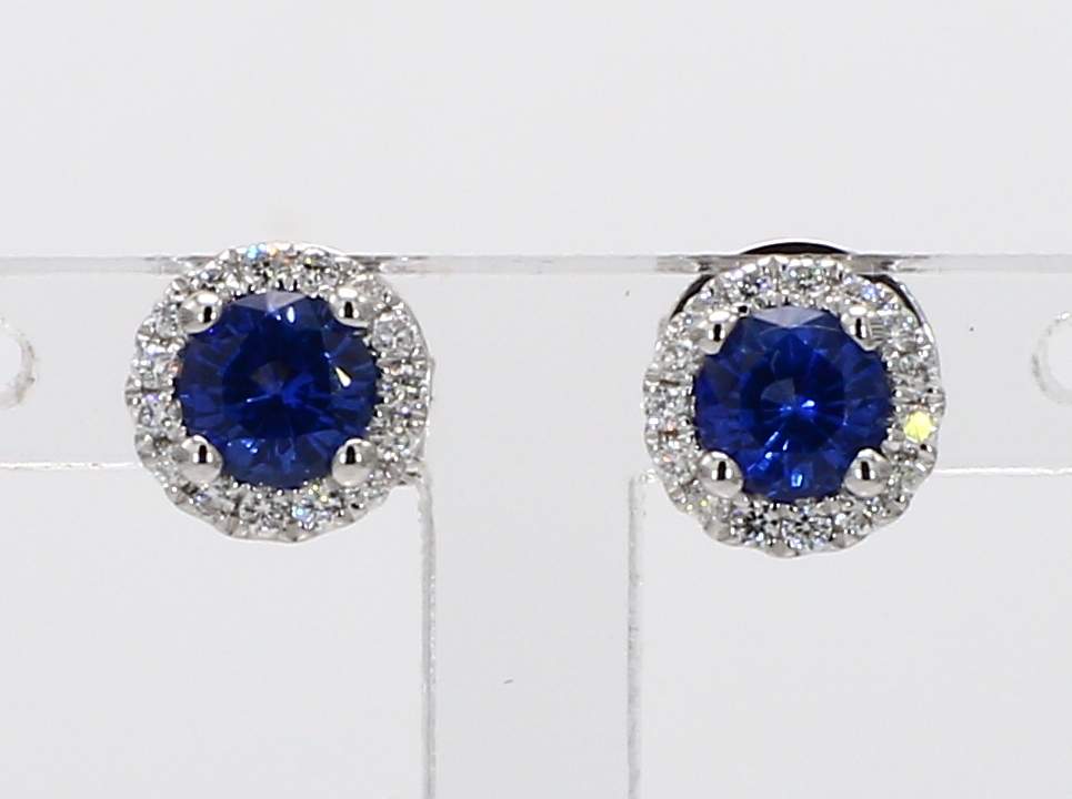 ROUND SAPPHIRE & ROUND DIAMOND 14KW EARRING