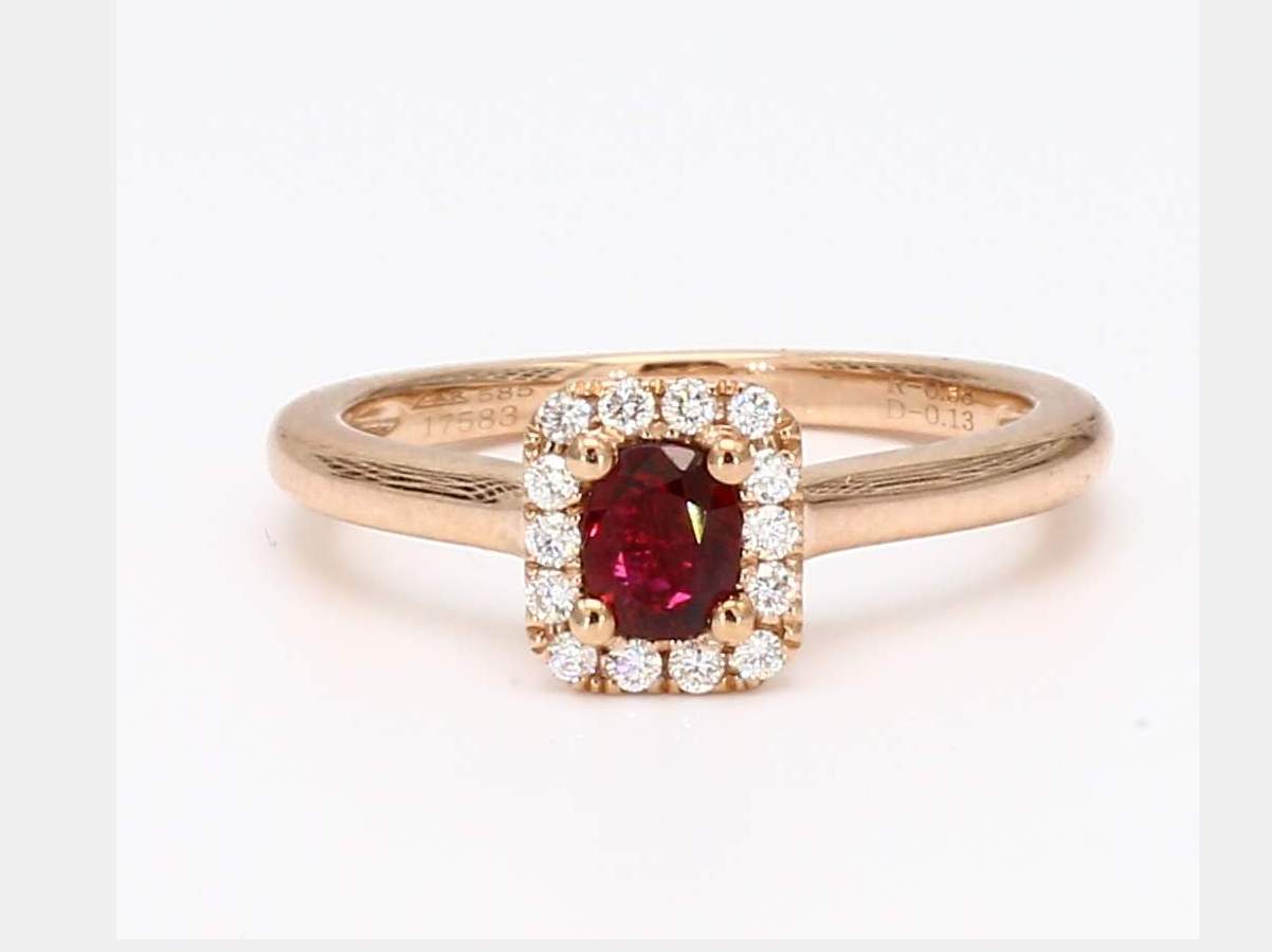 CUSHION RUBY & ROUND DIAMOND 14KR RING