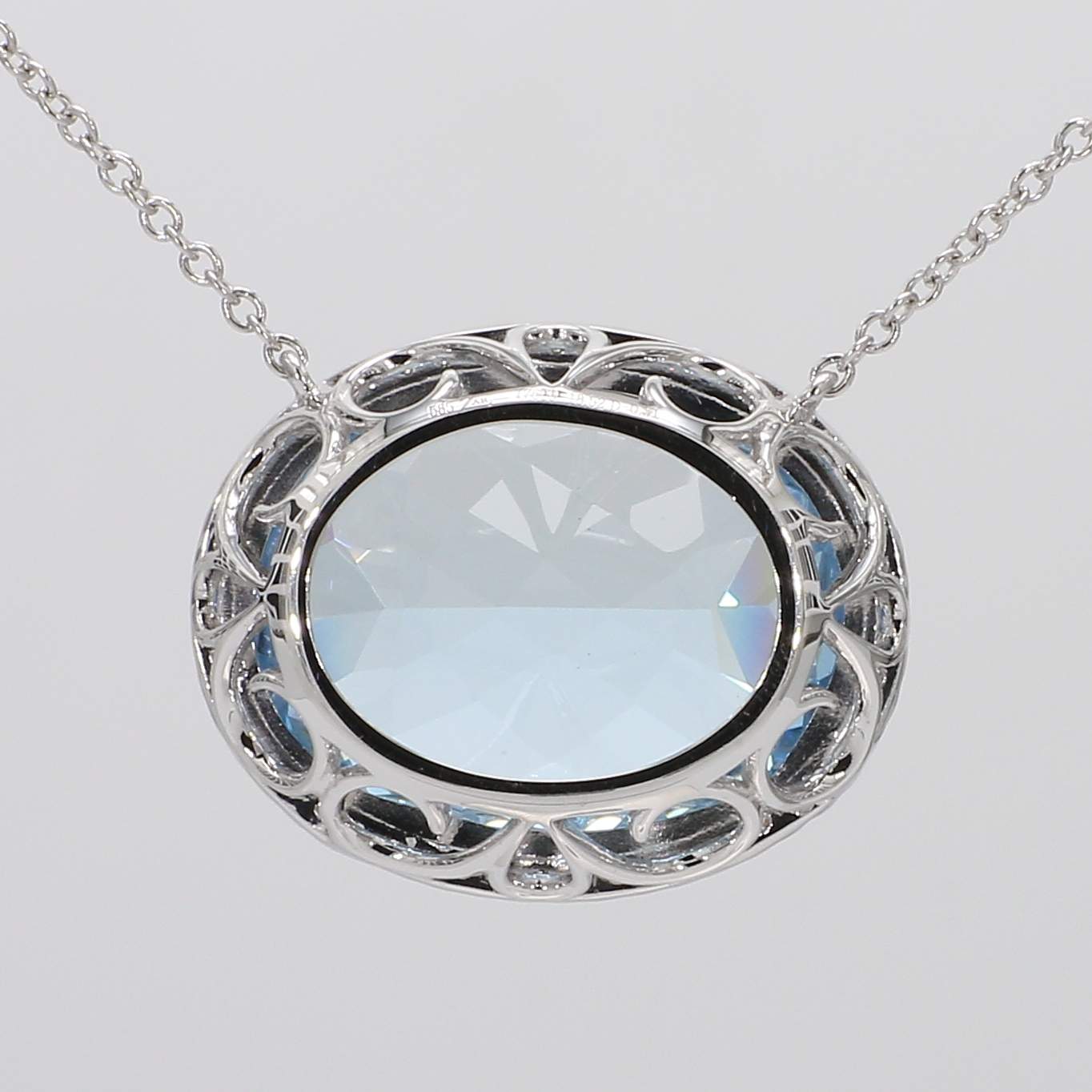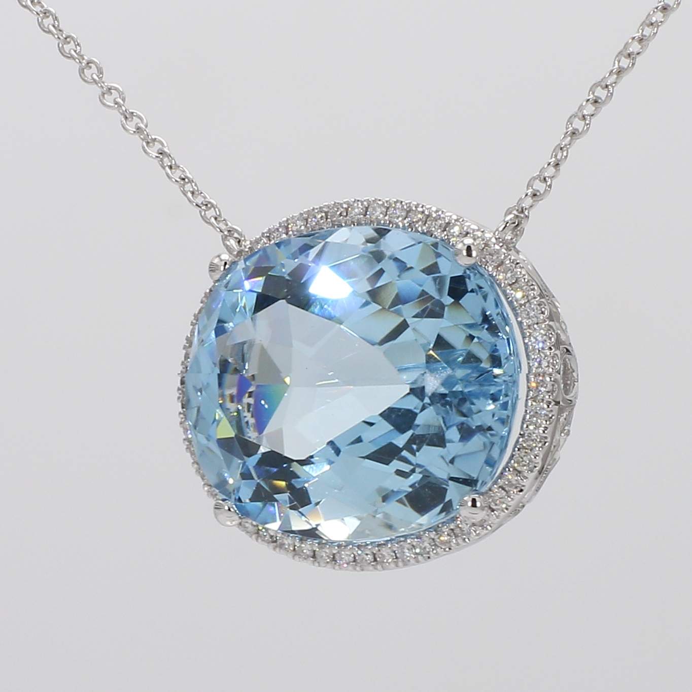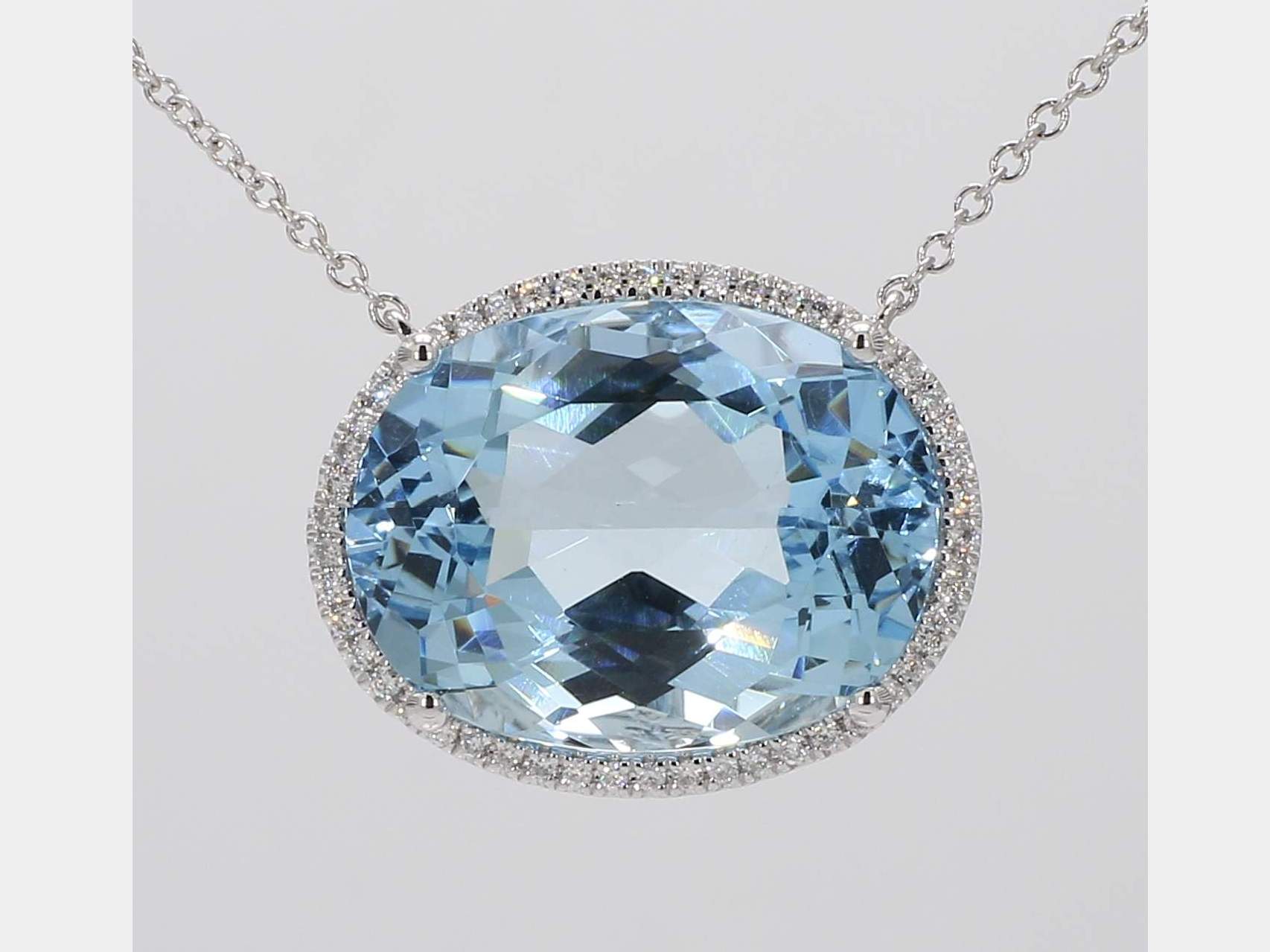 OVAL AQUAMARINE & ROUND DIAMOND 14KW NECKLACE