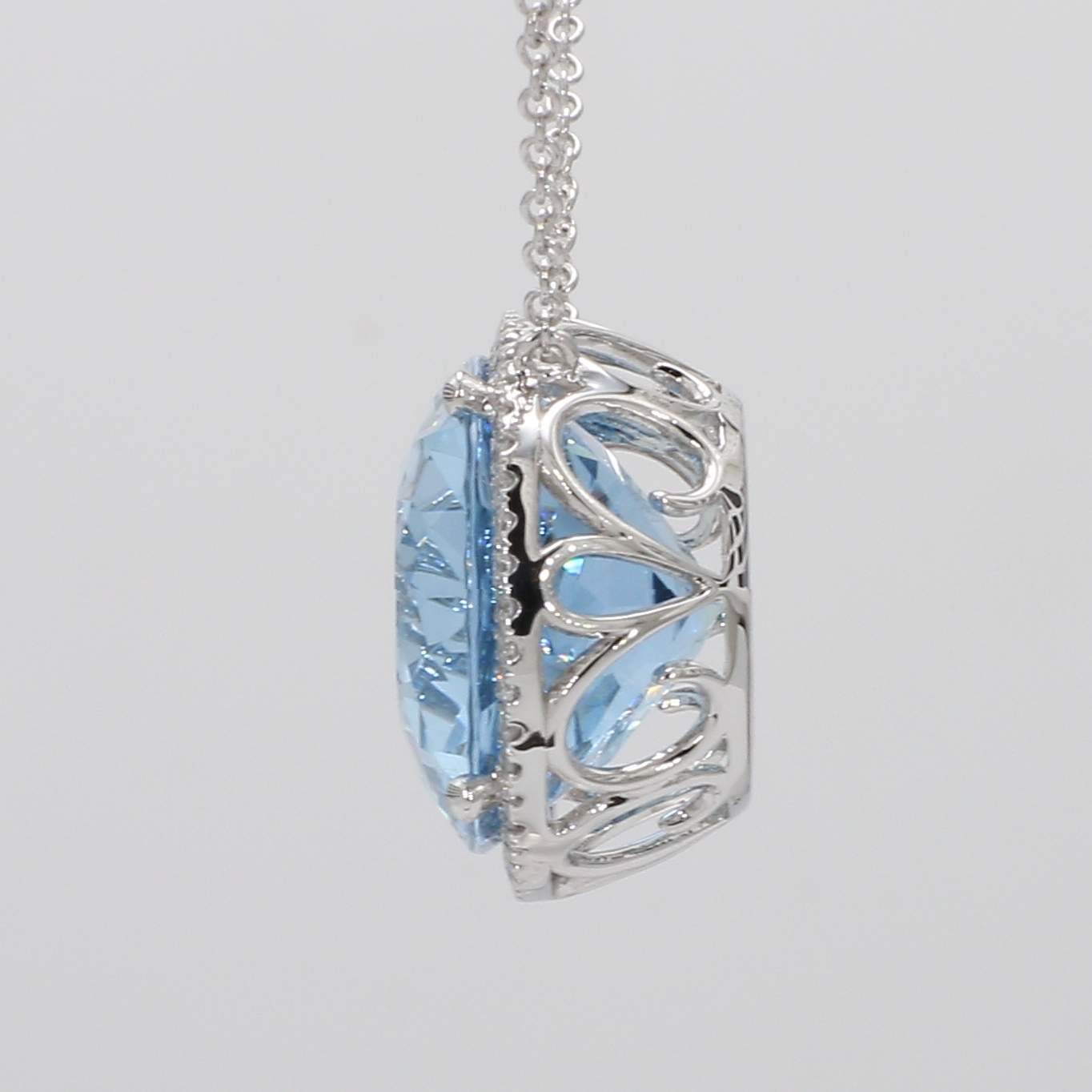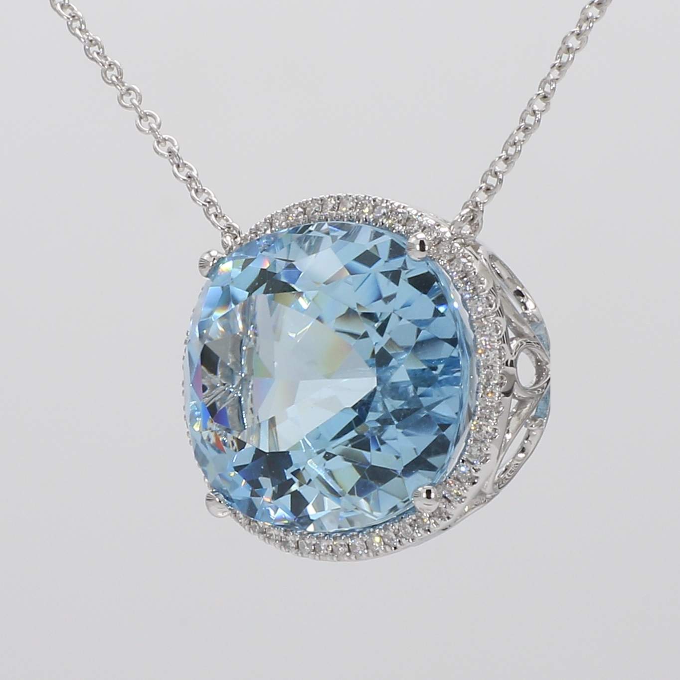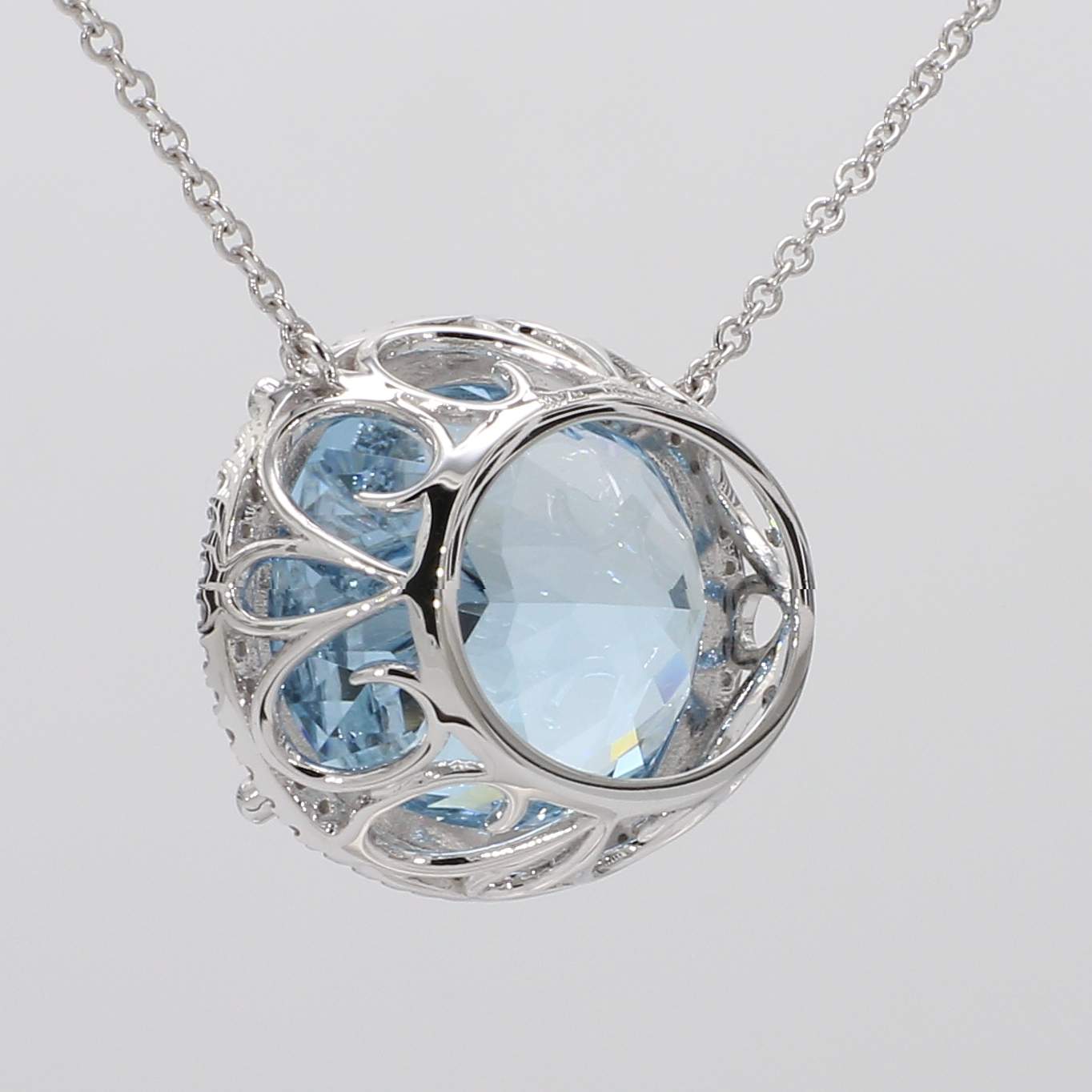 OVAL AQUAMARINE & ROUND DIAMOND 14KW NECKLACE