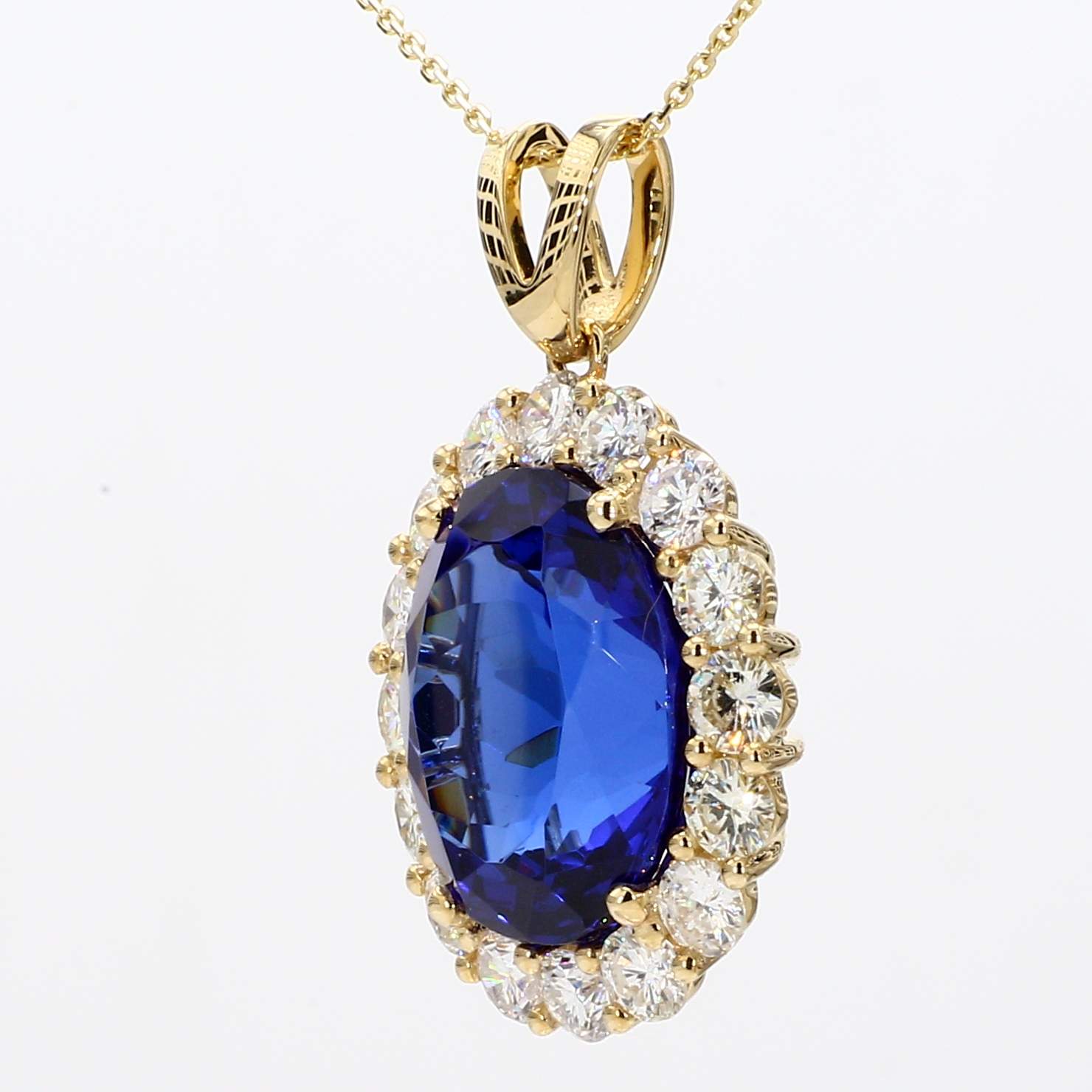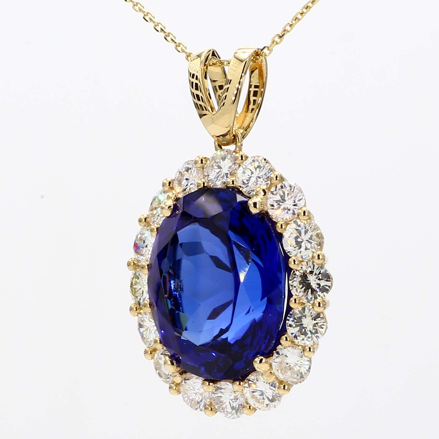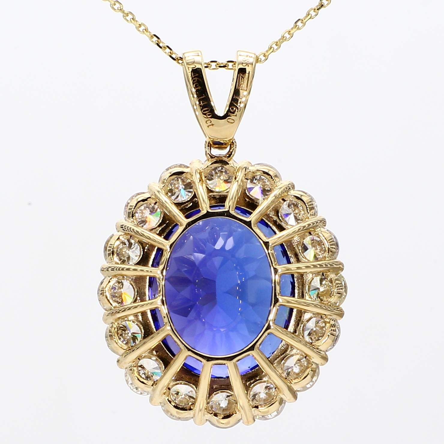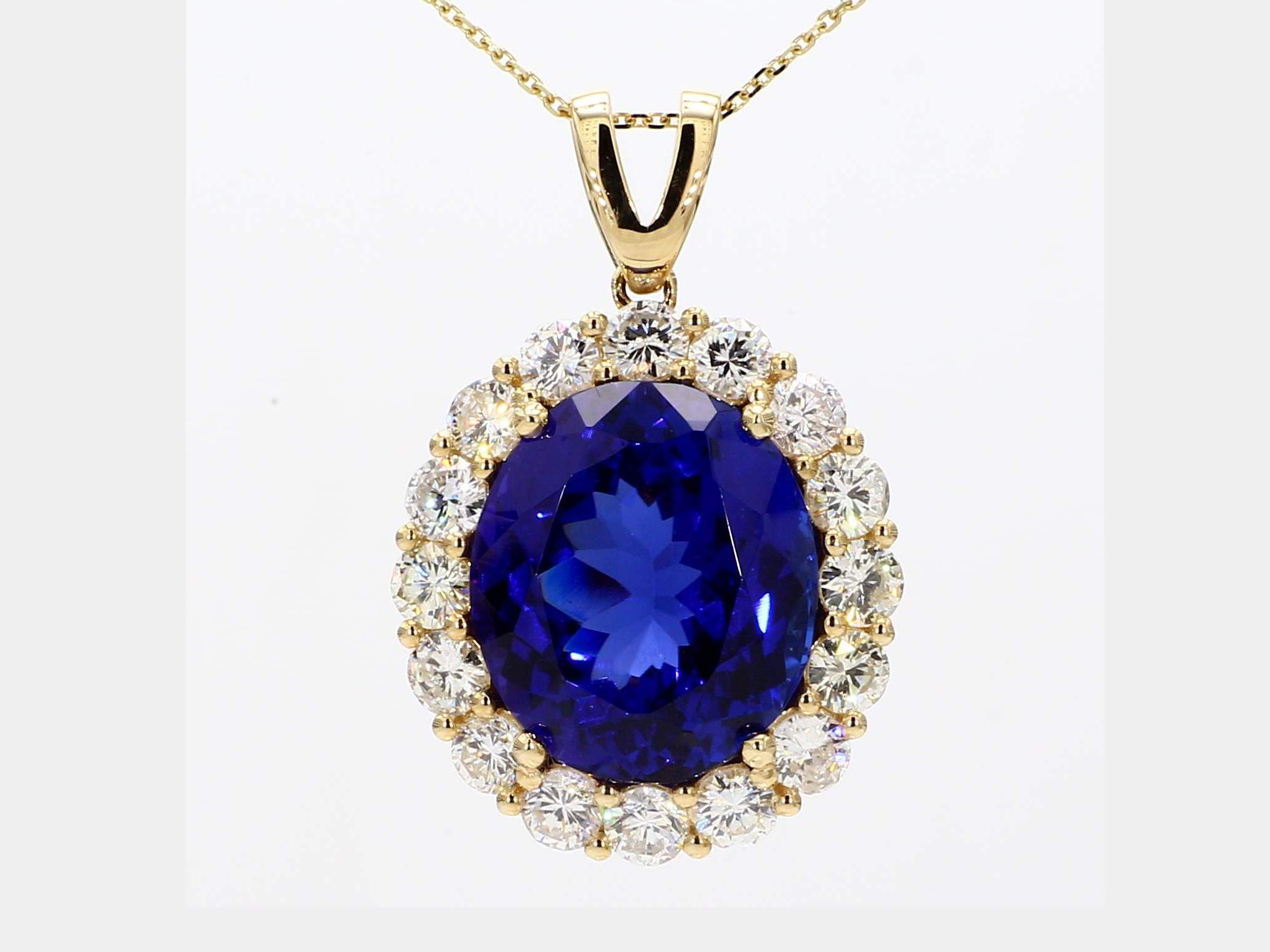 OVAL TANZANITE & ROUND DIAMOND 14KY PENDANT