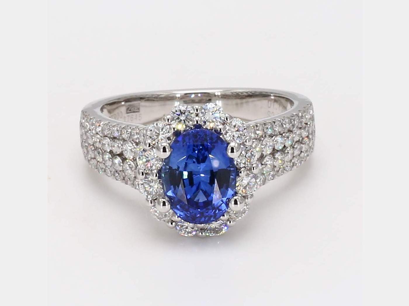 OVAL SAPPHIRE & ROUND DIAMOND PLATINUM RING
