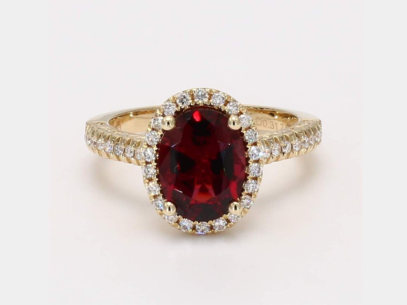 OVAL RED SPINEL & ROUND DIAMOND 14KY RING