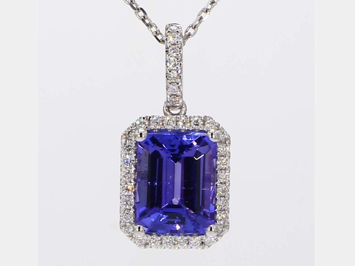 EMERALD CUT TANZANITE & ROUND DIAMOND 14KW PENDANT