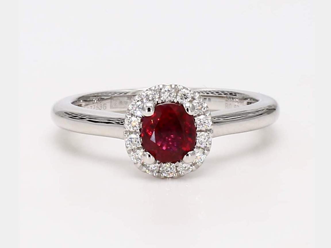 CUSHION RUBY & ROUND DIAMOND 14KW RING