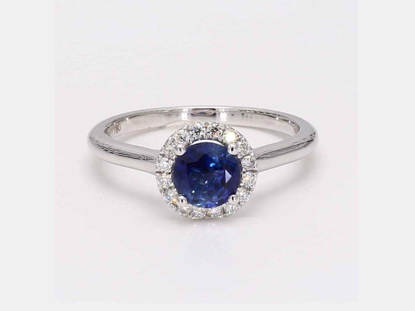 ROUND SAPPHIRE & ROUND DIAMOND 14KW RING