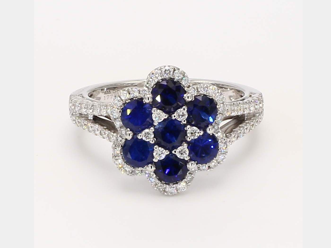 ROUND SAPPHIRE & ROUND DIAMOND 14KW RING